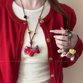 新款国潮真丝香云纱马上有钱中式非遗宋锦手工配饰小挂件项链生肖