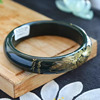 天然正品新疆和田玉青玉手镯雕花镯子深绿色墨玉老料玉石手环手饰