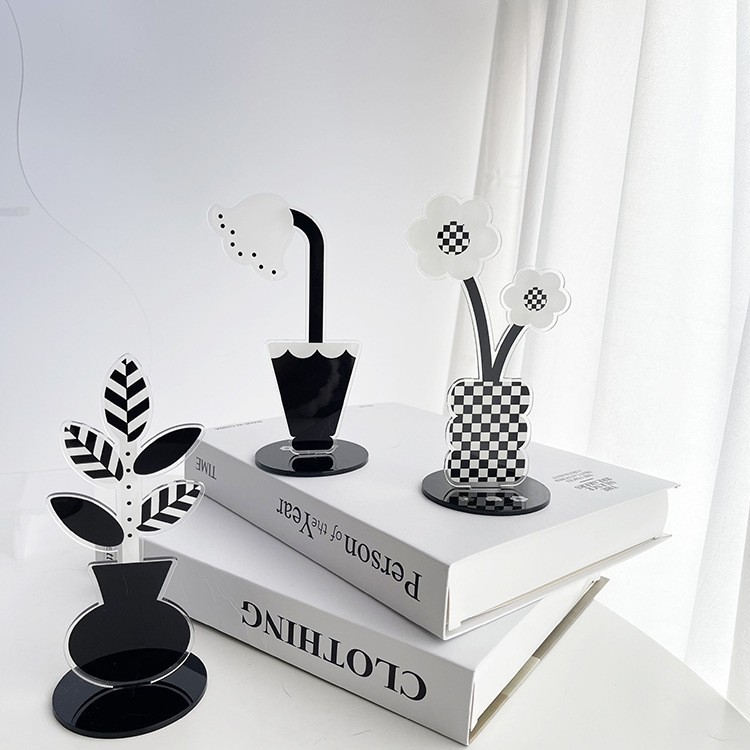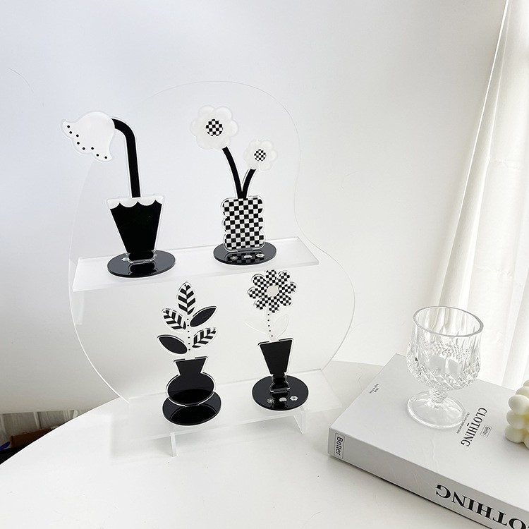 亚克力花朵摆件棋盘格黑色可爱便利夹桌面文件留言相片便签夹子