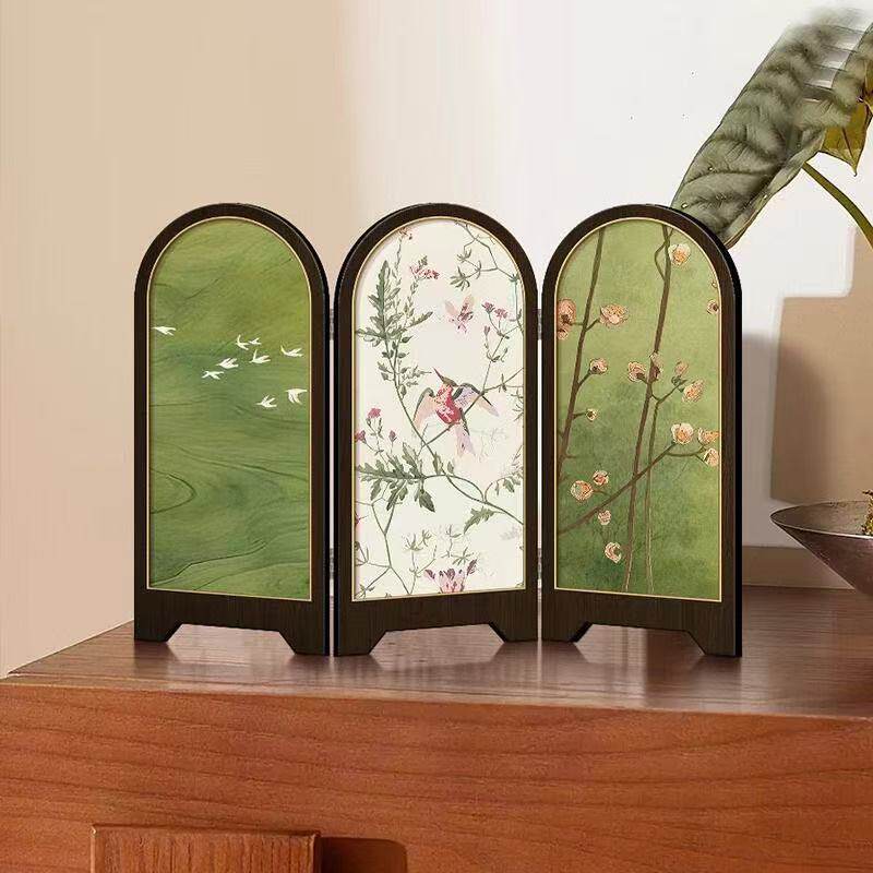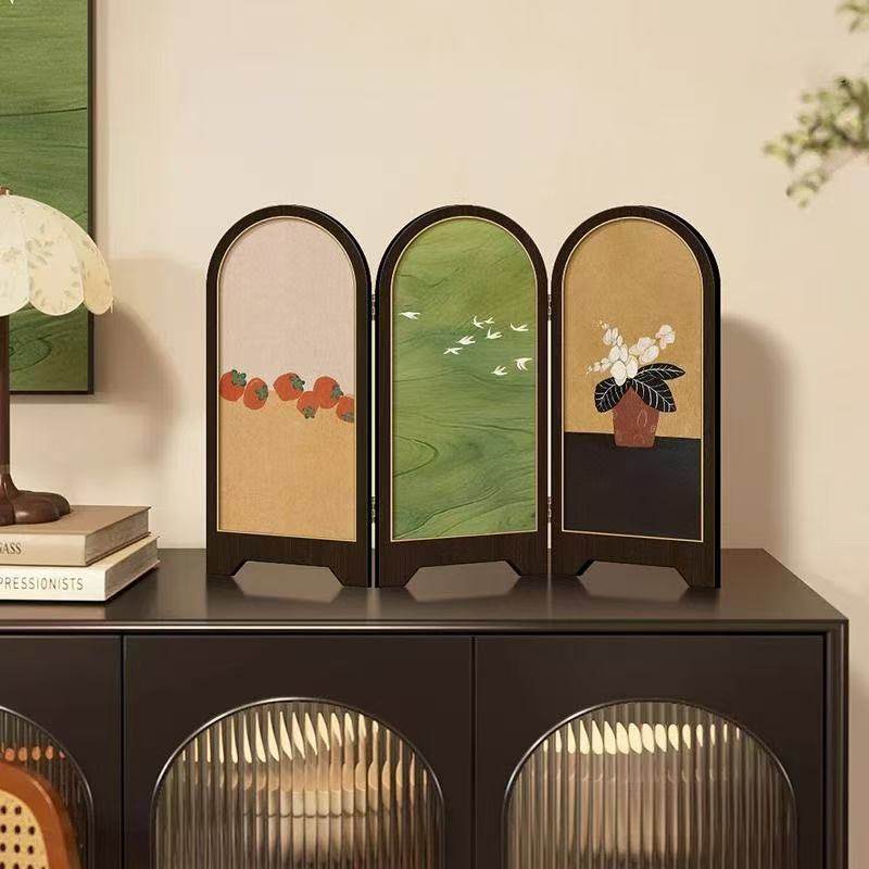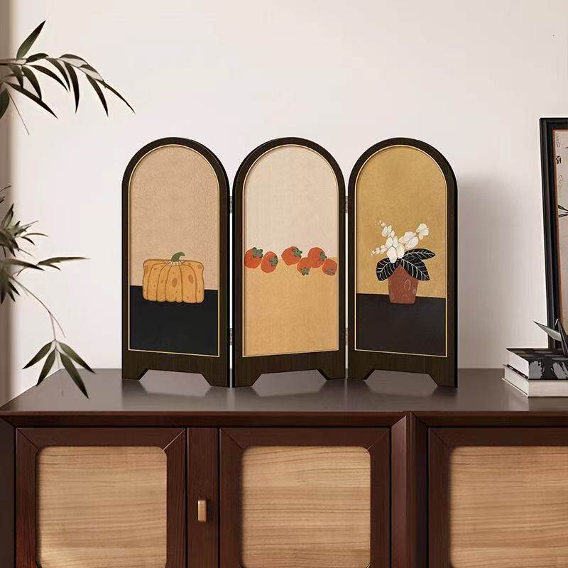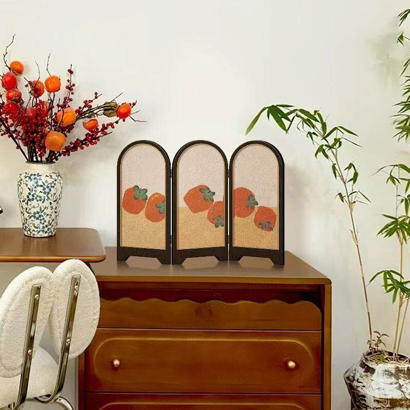 中古风屏风摆件玄关桌面客厅柿柿如意装饰品复古客厅电视柜置物架