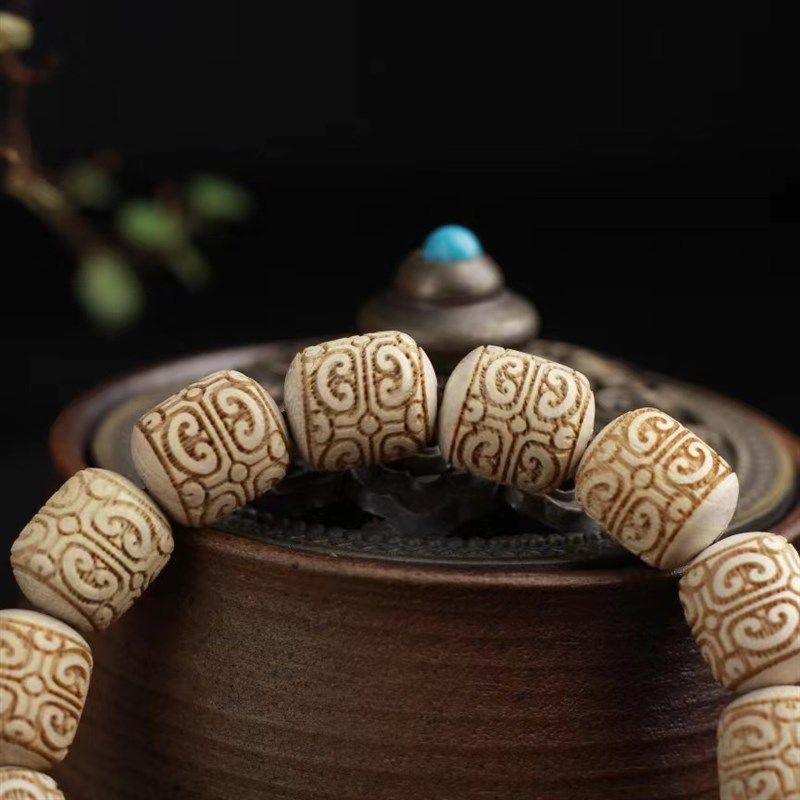 极速香樟木老型佛l珠雕刻回纹珠手串桶珠文玩木质念珠饰品男女款