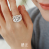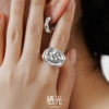 UNAWARES亮面银色合金不规则纹理肌理手工打造凹凸戒指环开口