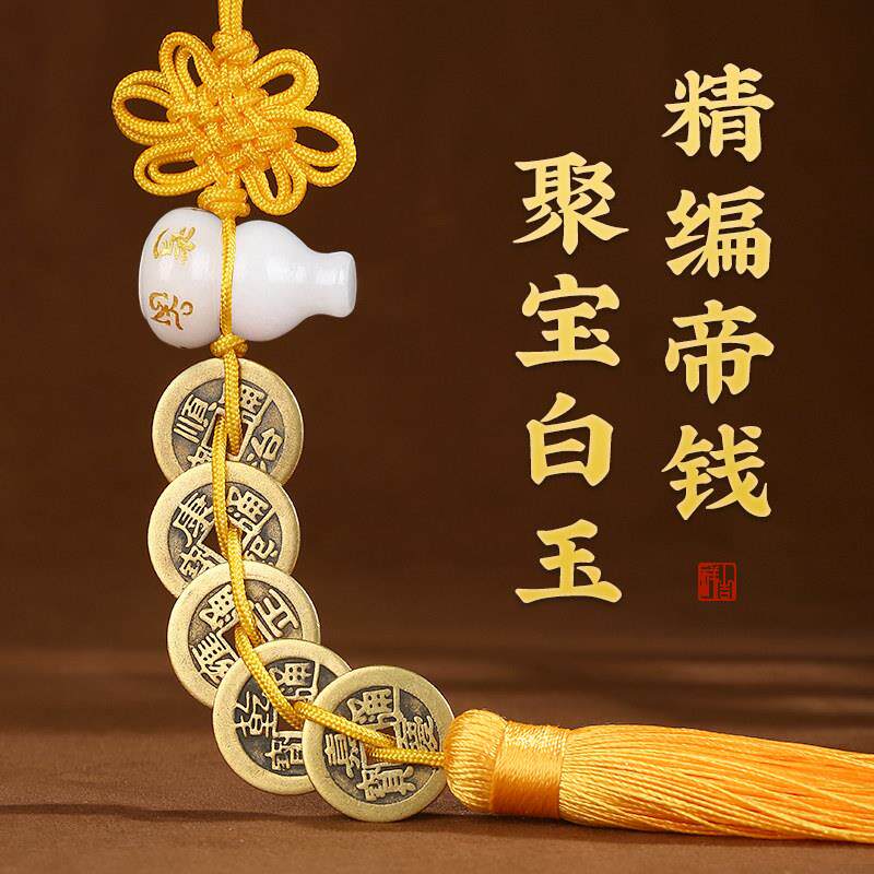 白玉葫芦五帝钱真品铜钱黄线挂件六字真言六帝钱大门对邻居门卧室