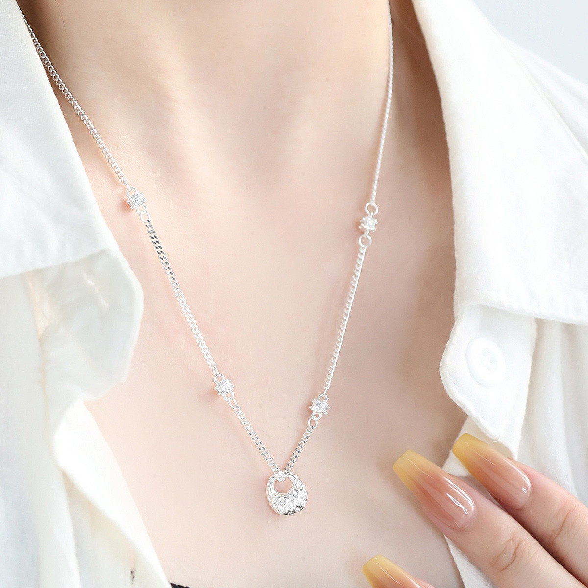 925银锁包项链女2025年简约时尚通勤个性百搭锁骨链饰品小众设计