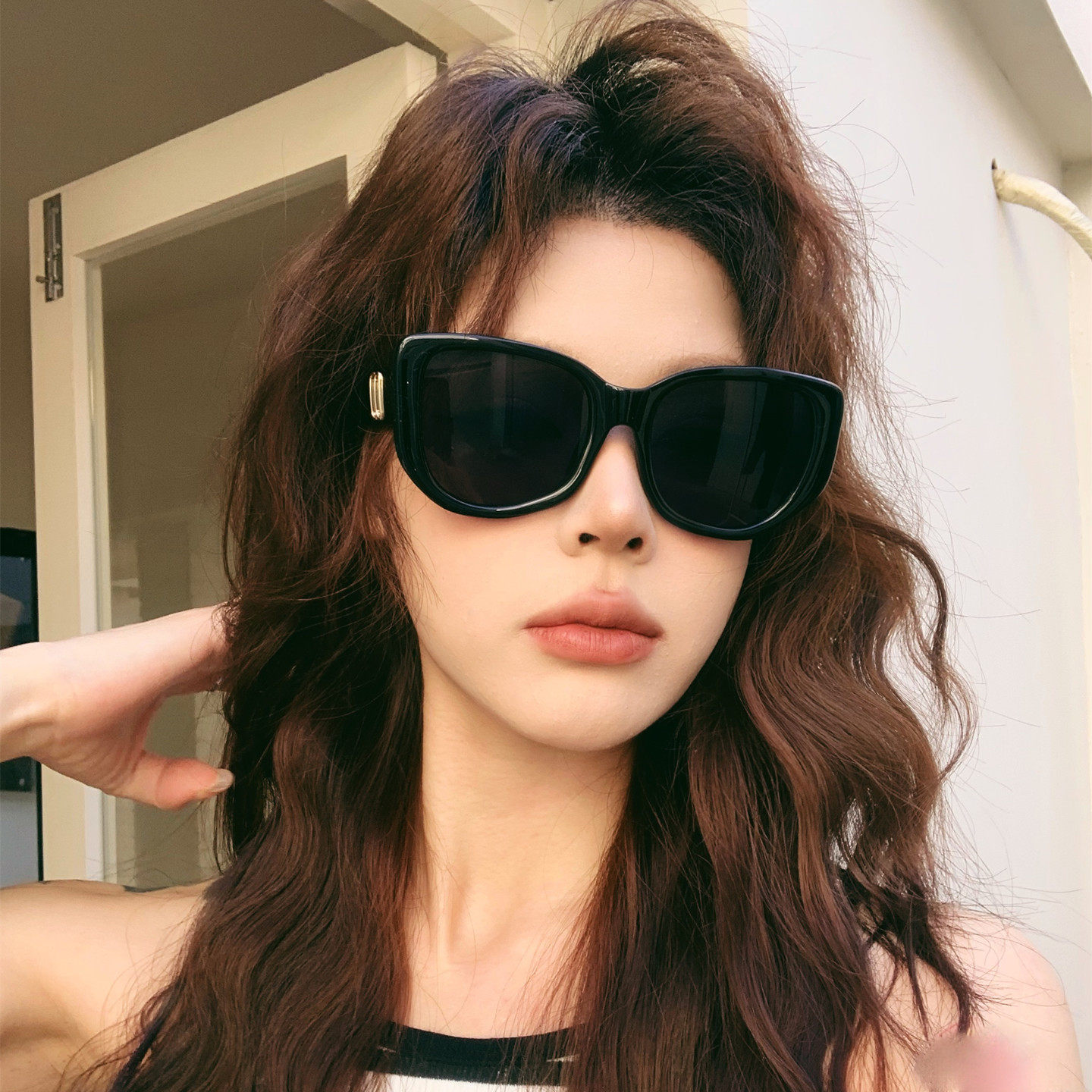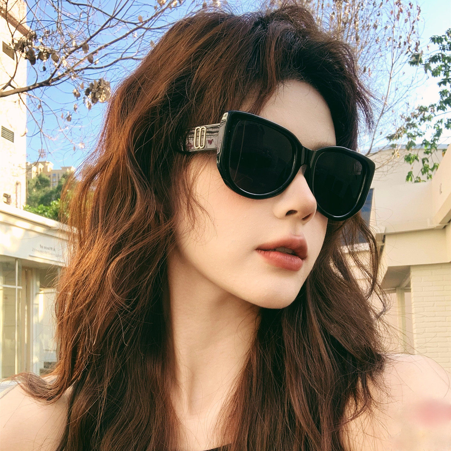 新款复古猫眼墨镜女黑色大框高级感时尚潮流防紫外线显脸瘦太阳镜