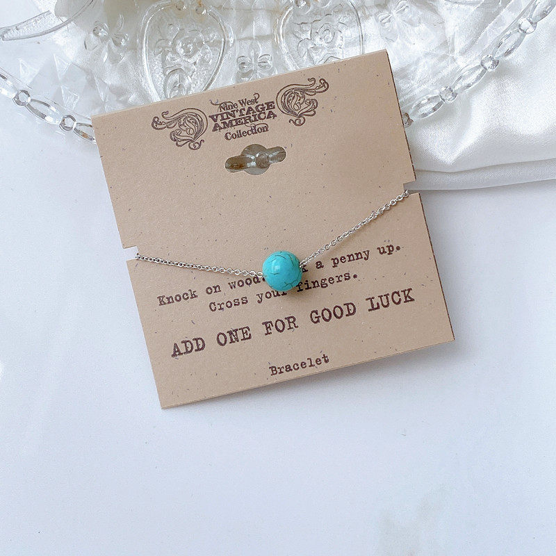 欧美外贸饰品 个性简约圆珠天然幸运绿松石古法轻奢原单手链