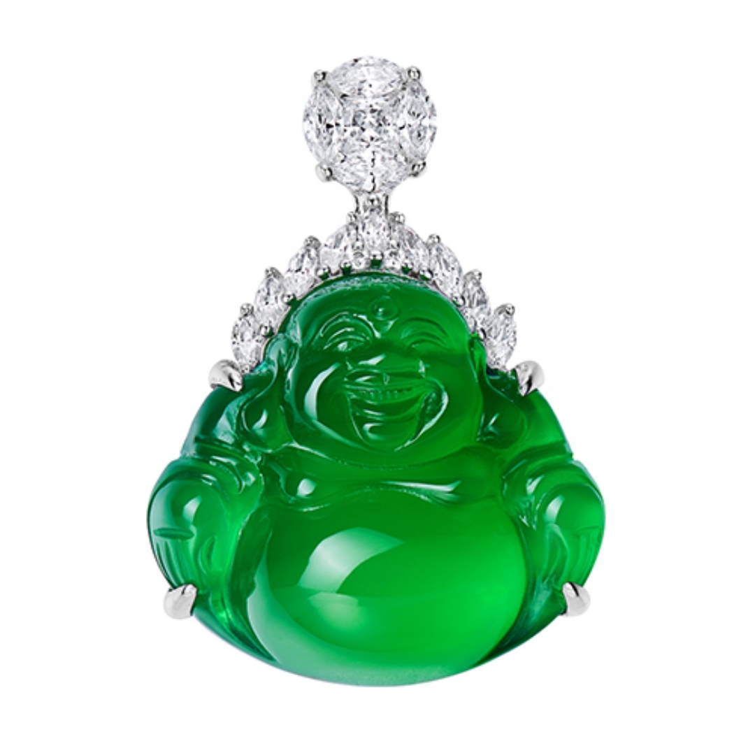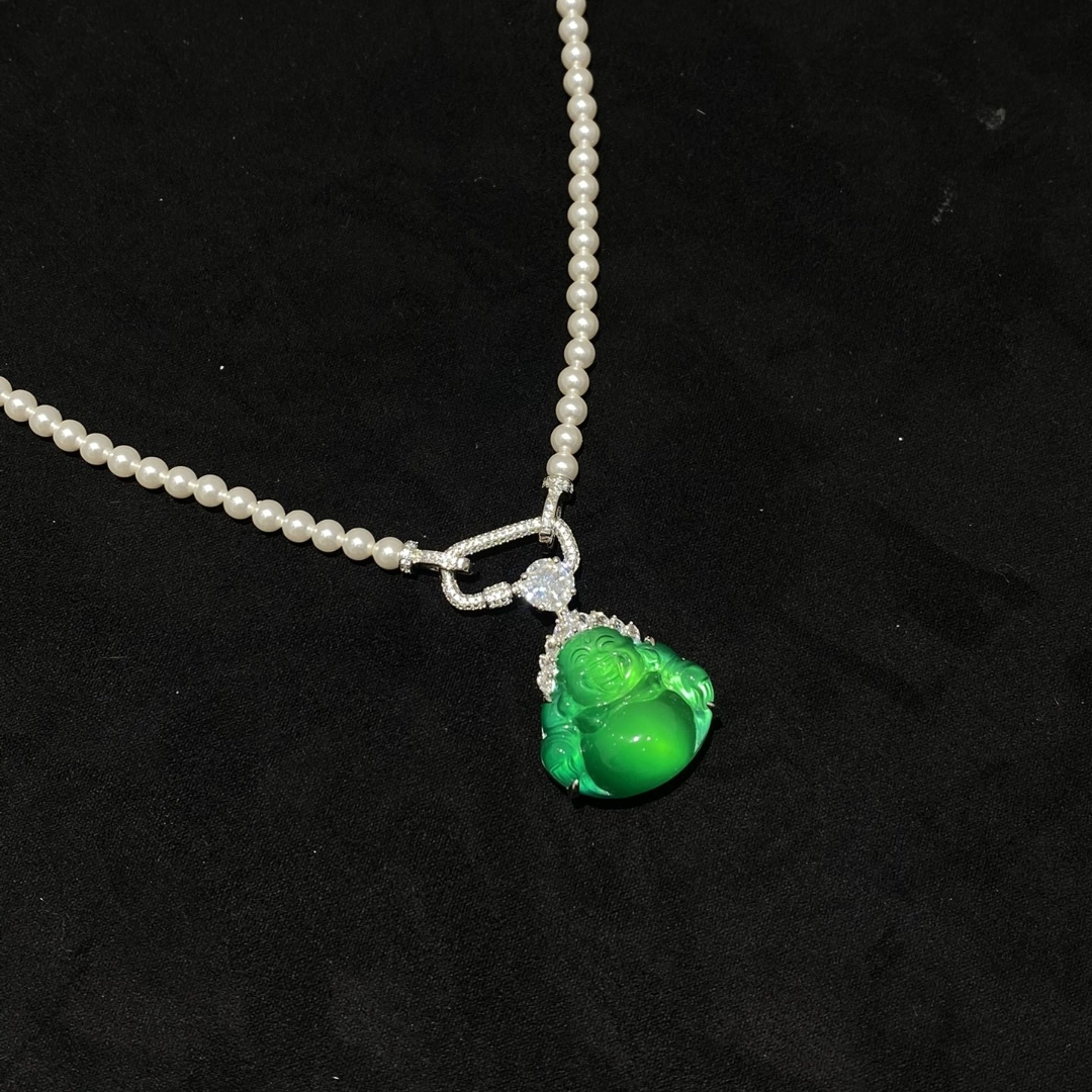 新中式国风绿件20*22mm小绿玉髓佛公吊坠项链女925纯银手工镶嵌