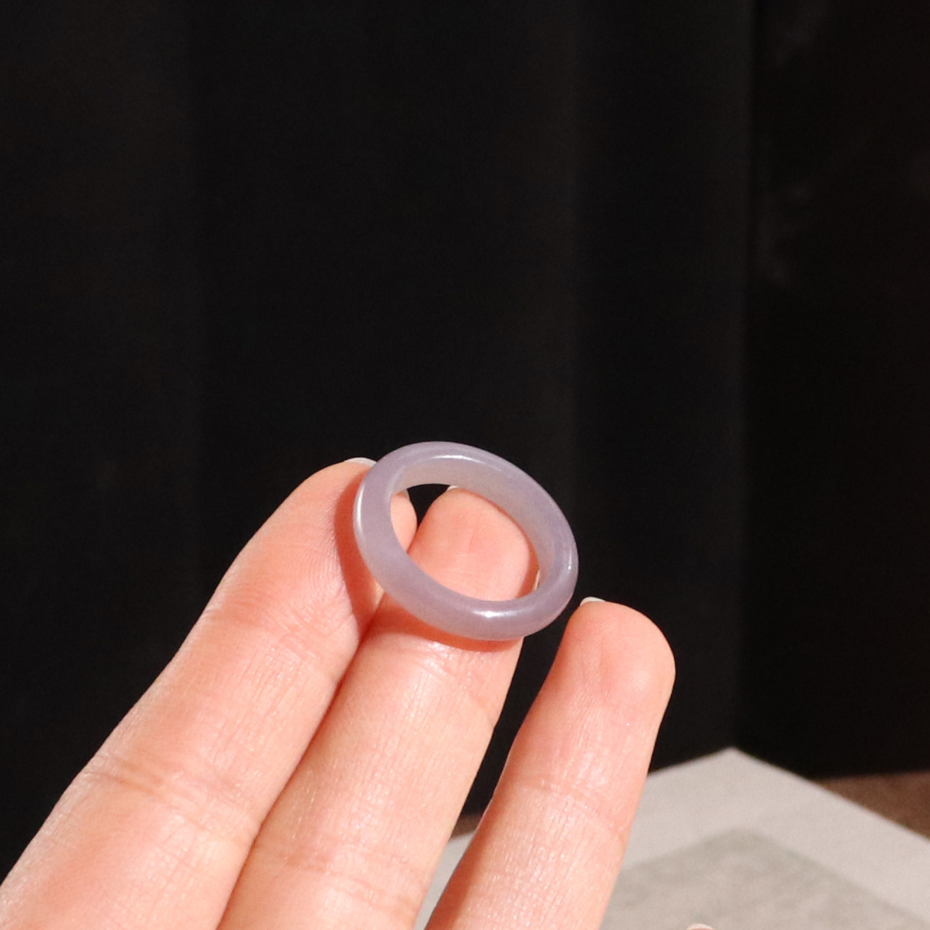 天然和田玉烟紫戒指16号玉石指环香芋紫色叠戴款手饰配饰带证书