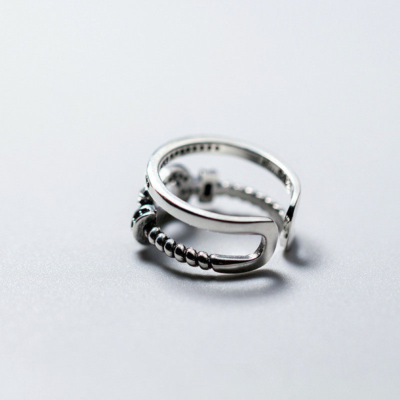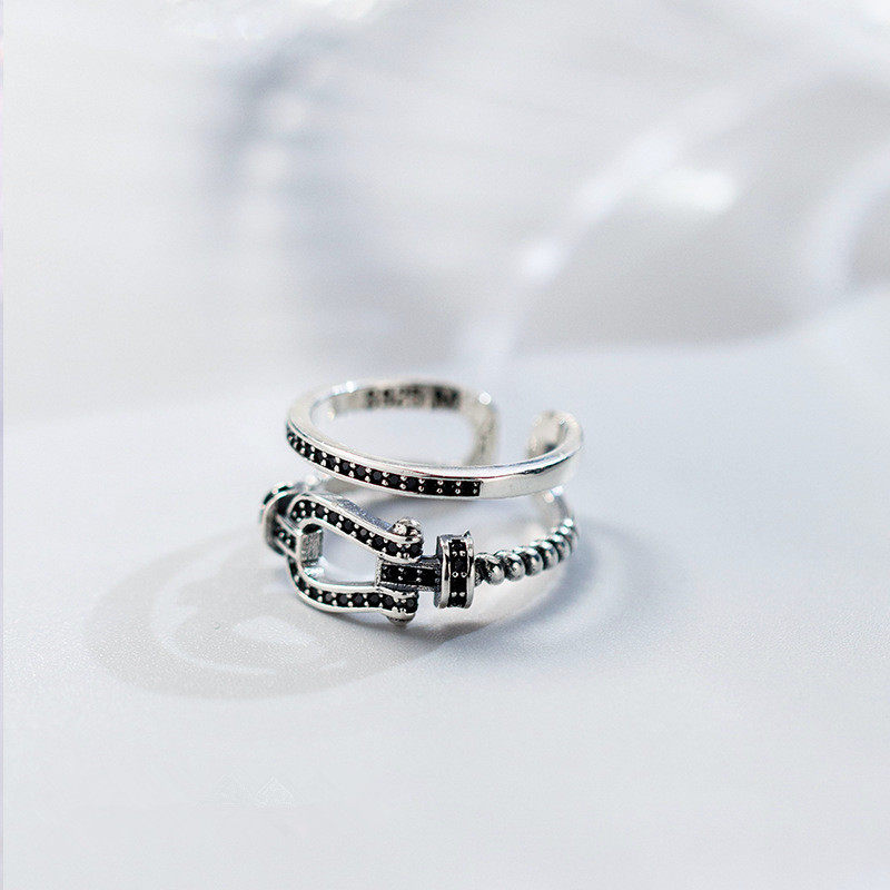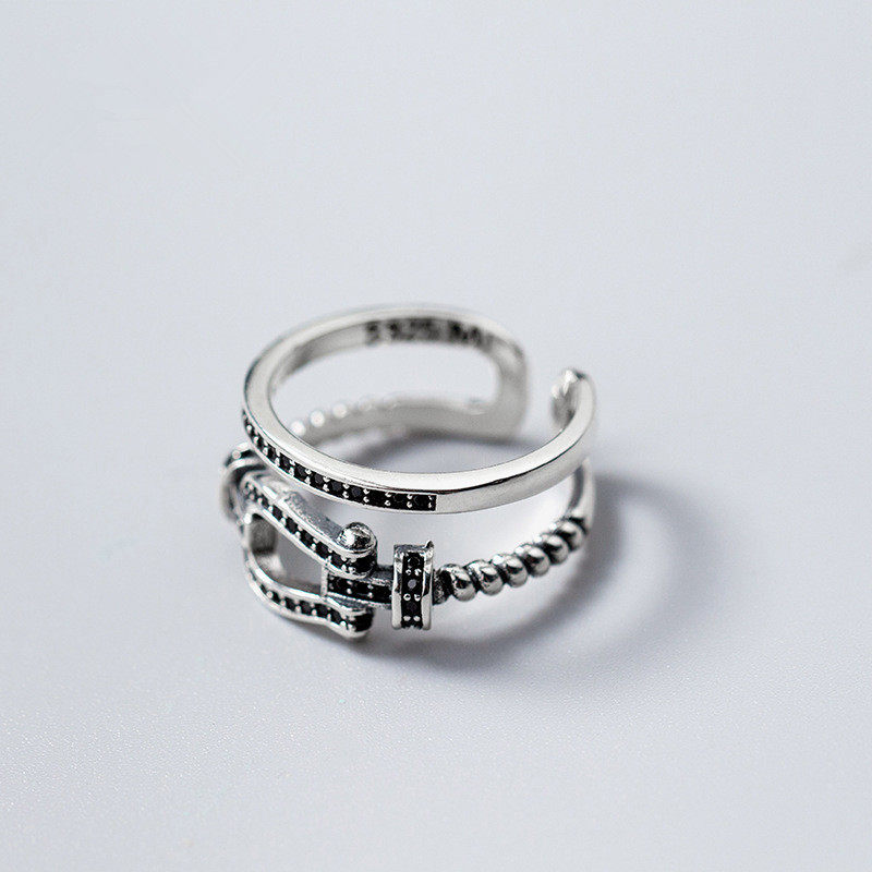时尚八心八箭镶钻皮带双层指环简约气质满钻戒指女个性开口食指戒