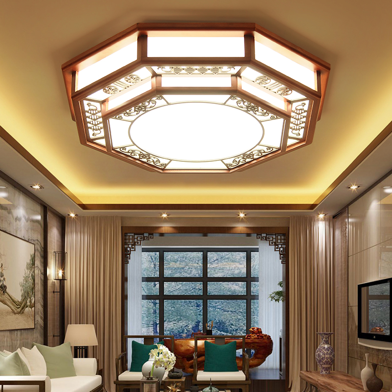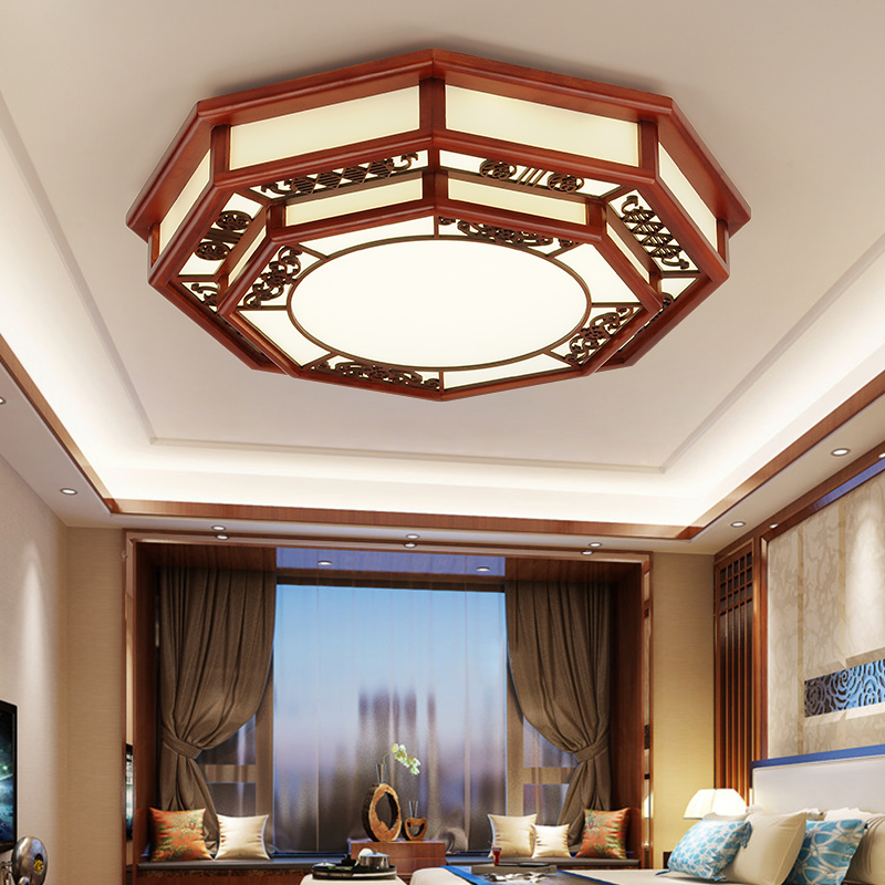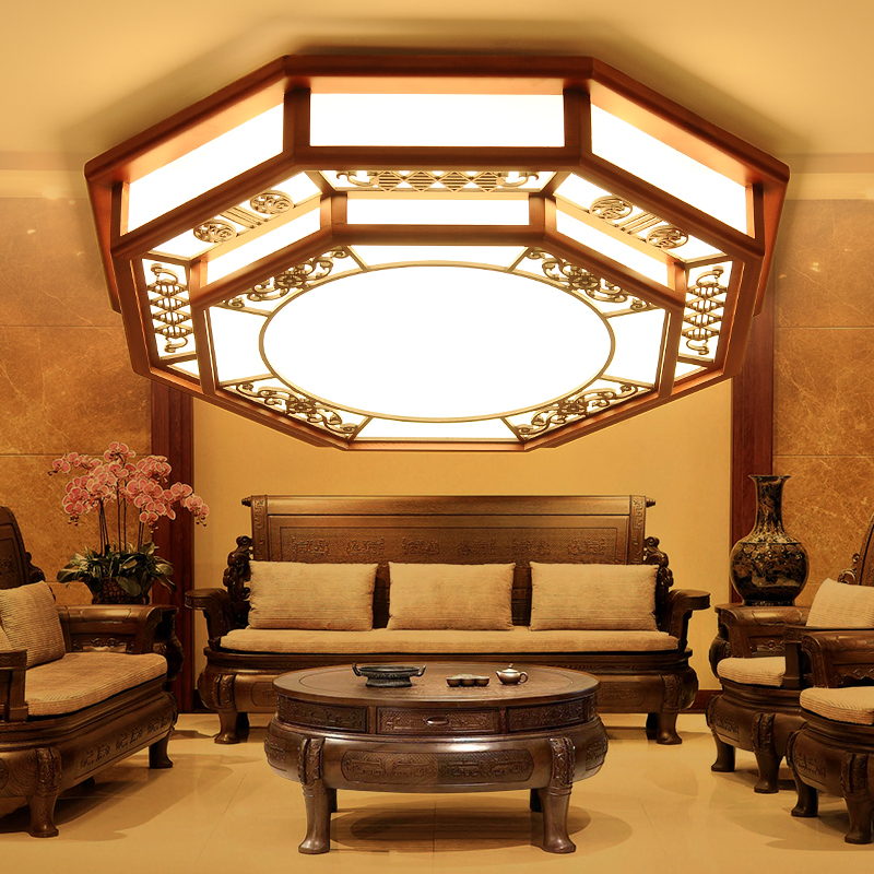 式灯具 客厅吸顶灯国风仿古现代实木LD八角大气卧室餐厅灯饰