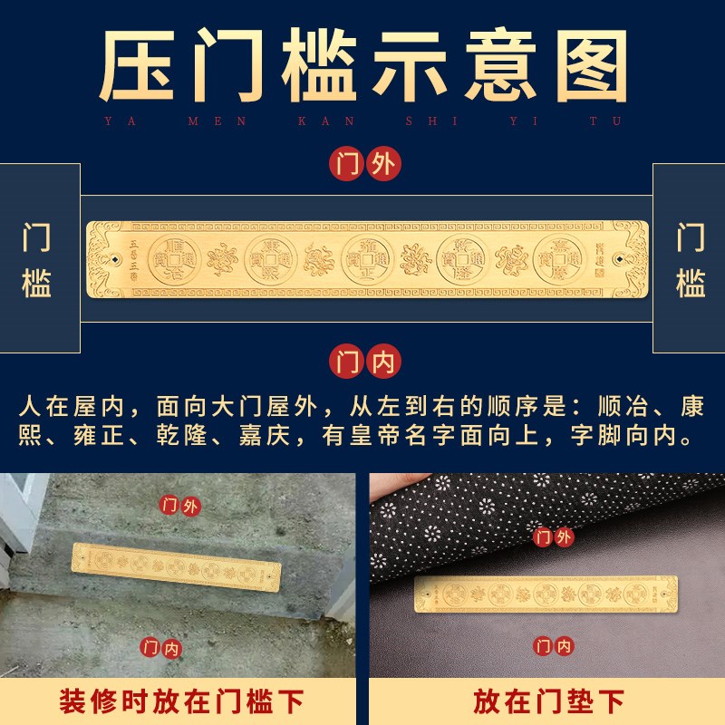 道家纯铜五岳真形图五帝尺t摆件家宅平安入户门新房压门槛专用铜