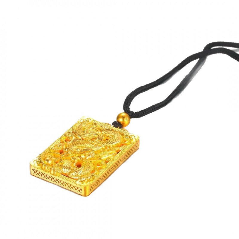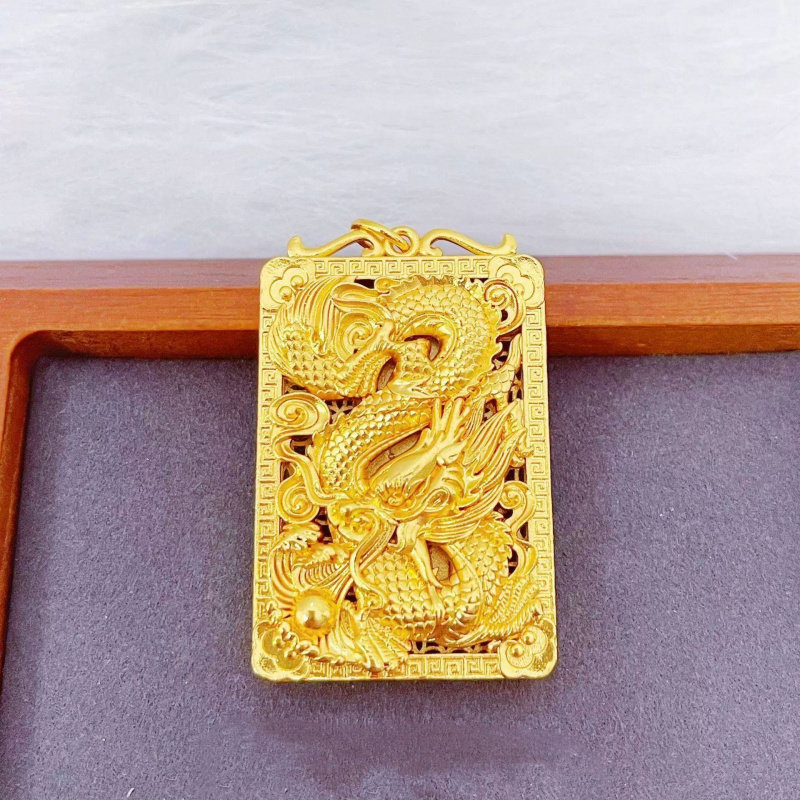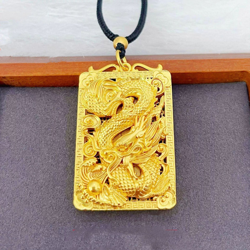 沙金饰品龙牌吊坠男士方牌挂坠霸气百搭龙行天下吊坠项链轻奢小众