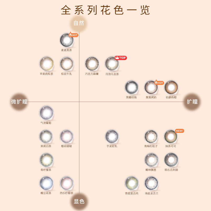moody奶茶美瞳半年抛2片彩色近视隐形眼镜冷泡乌龙茶自然大小直径