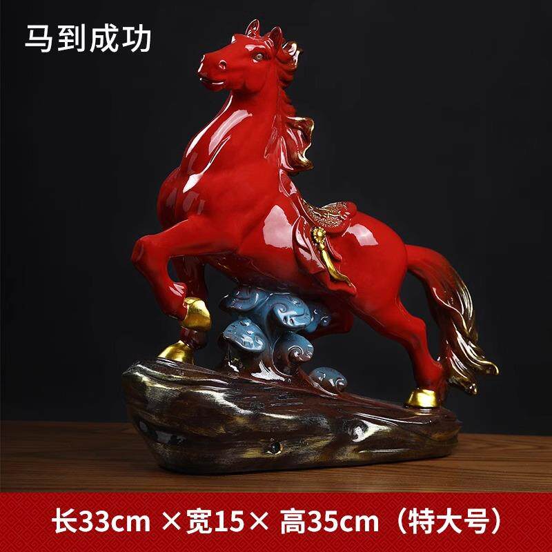 新款马招到成摆厅件陶瓷红色功财马工艺品创意中式客办公室家居装