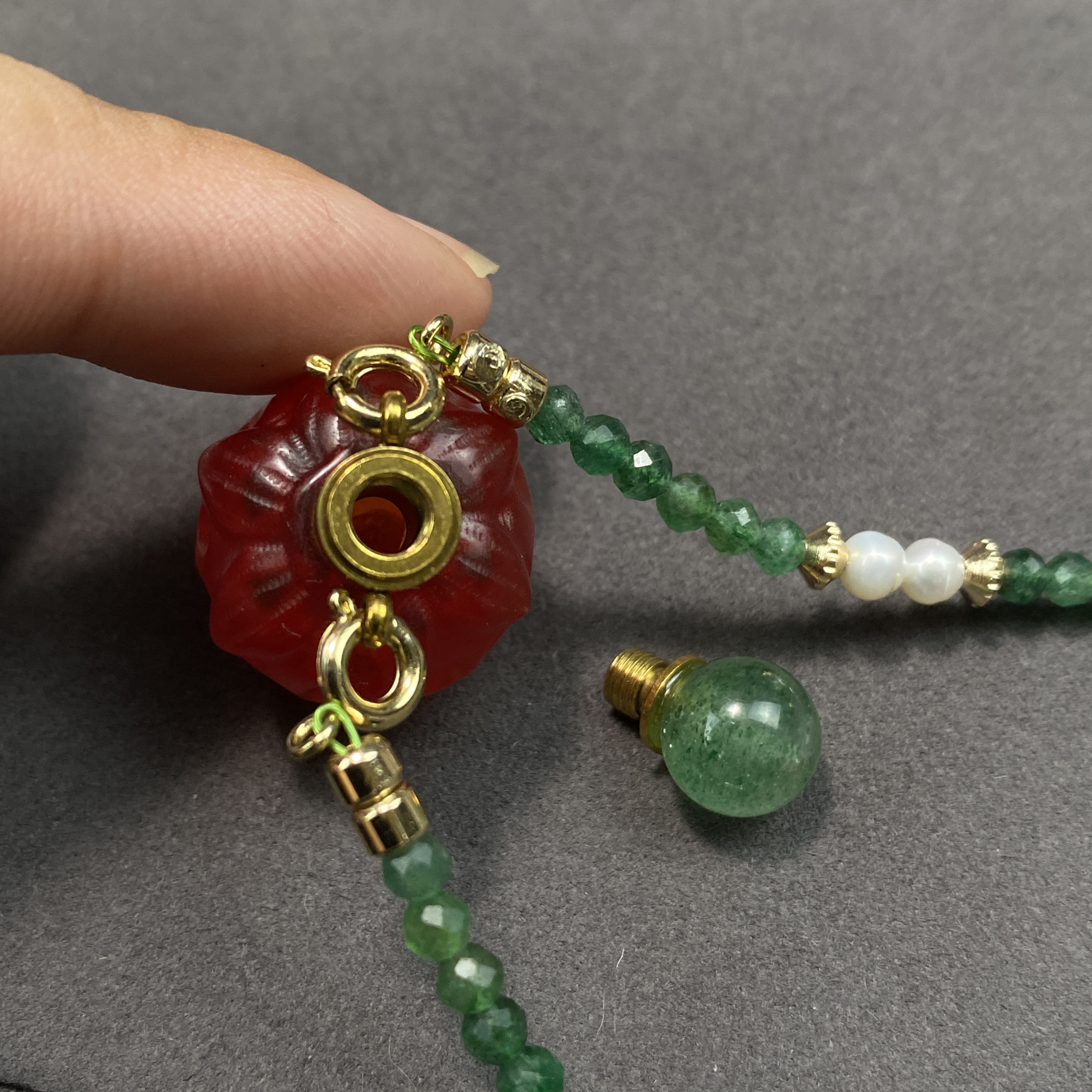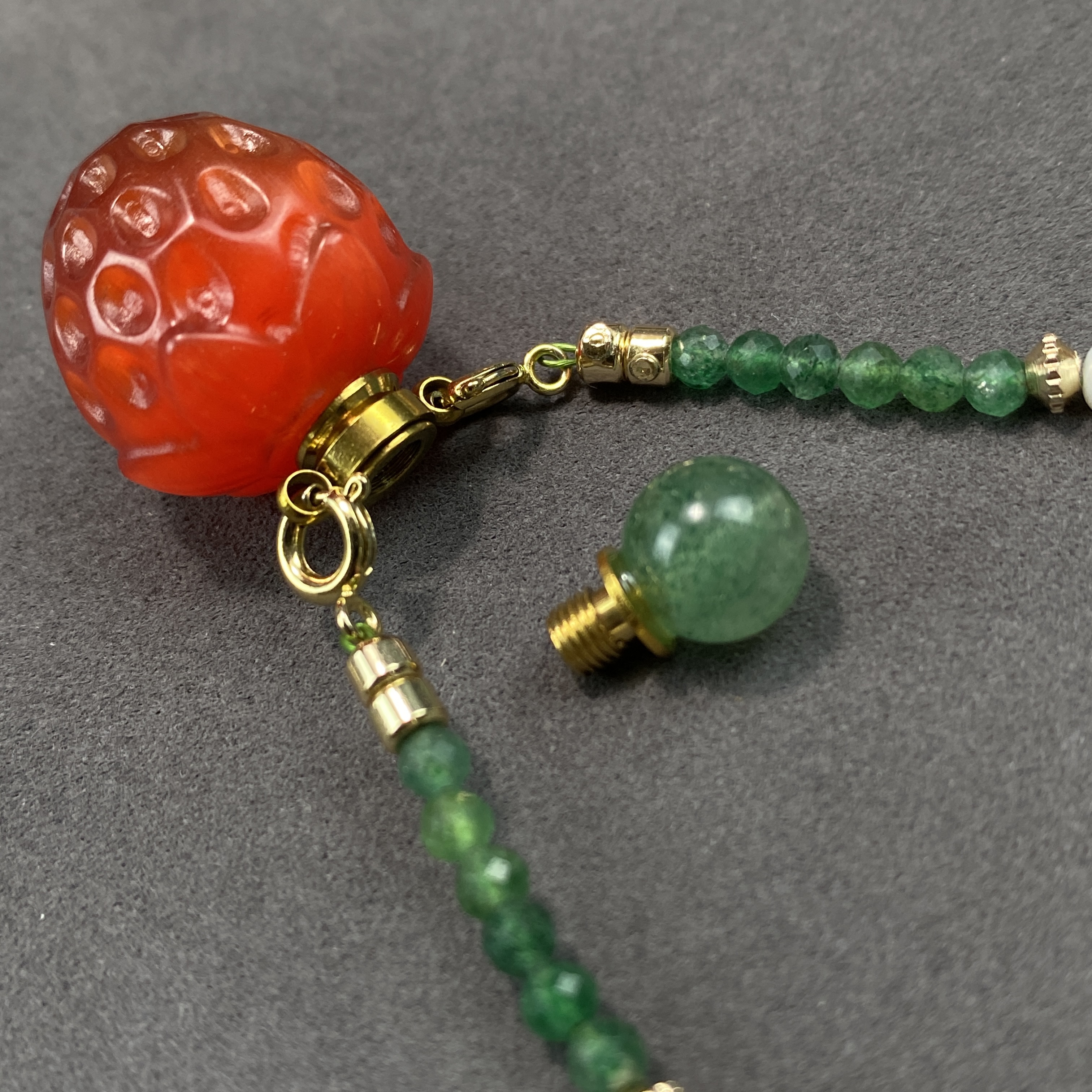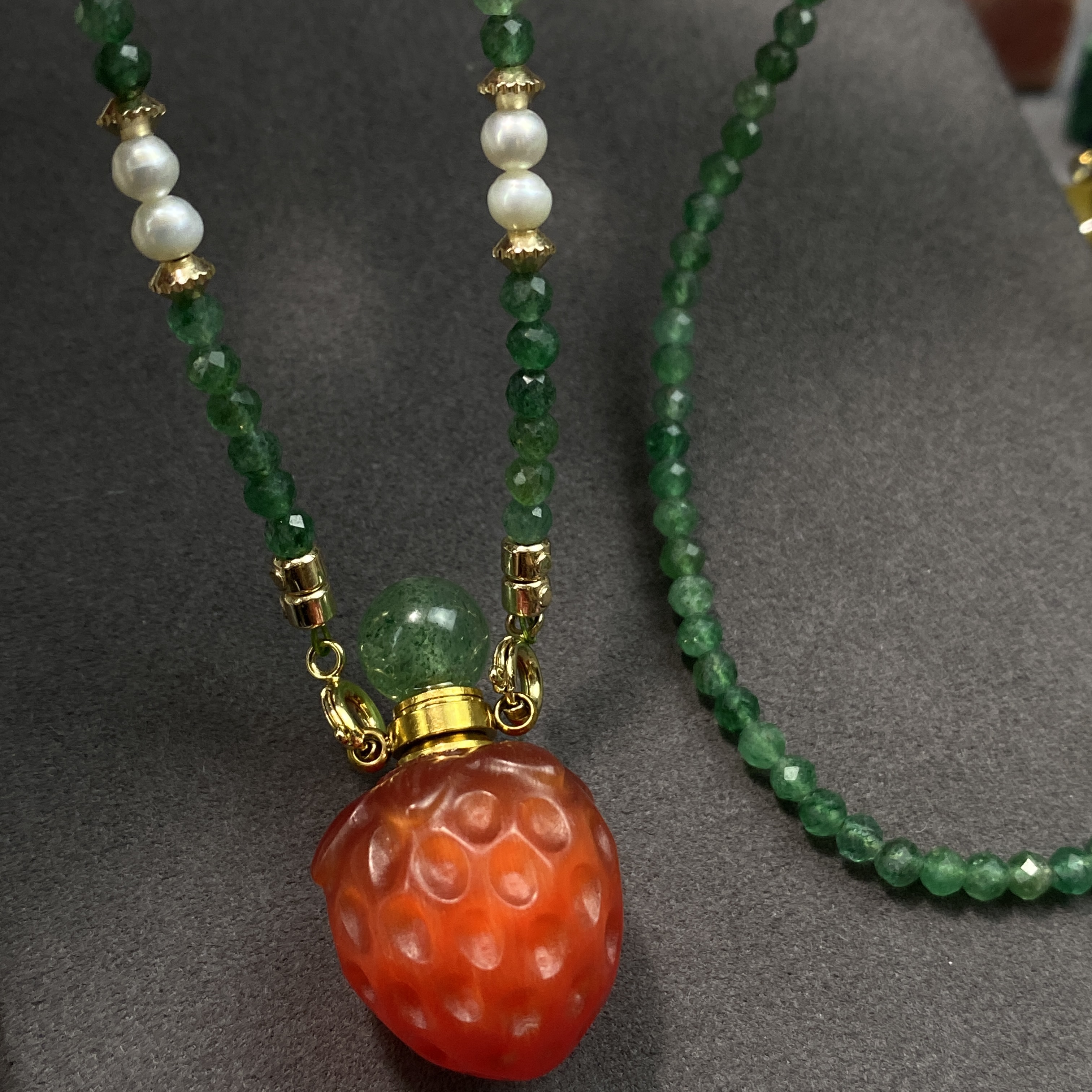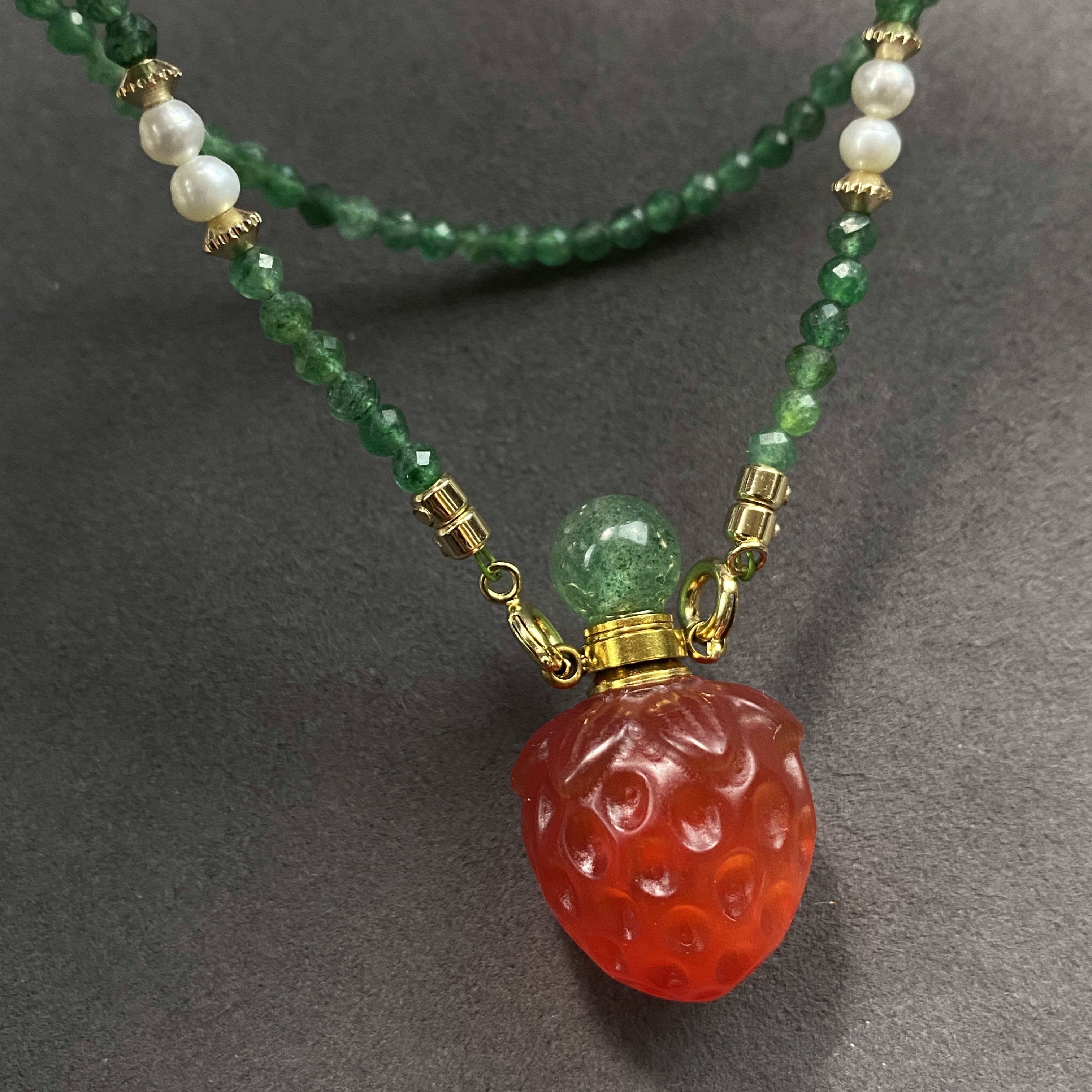 红色猫眼石草莓精油瓶吊坠香水瓶可装胎毛朱砂送女友闺蜜生日礼物
