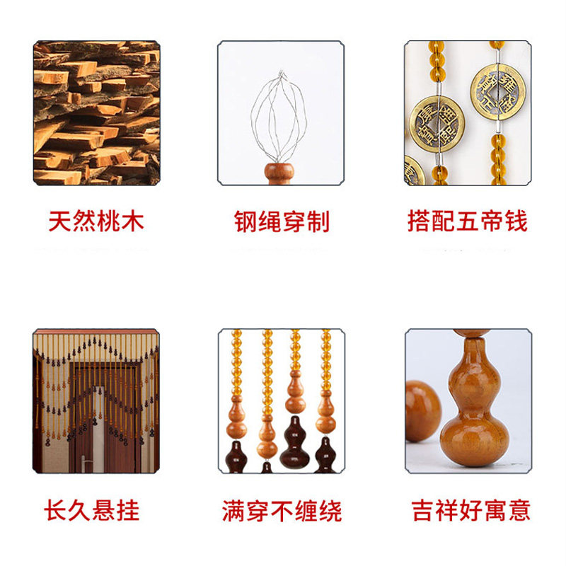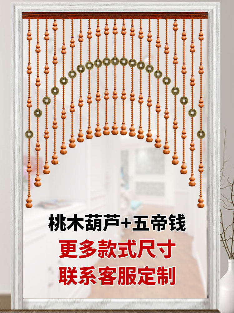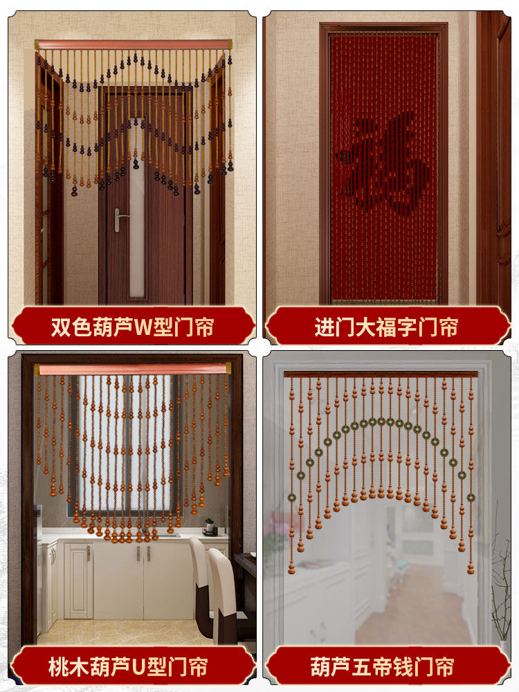 全桃木葫芦门帘珠帘半帘卫生间卧室客厅挂帘对门帘子隔断帘免打孔