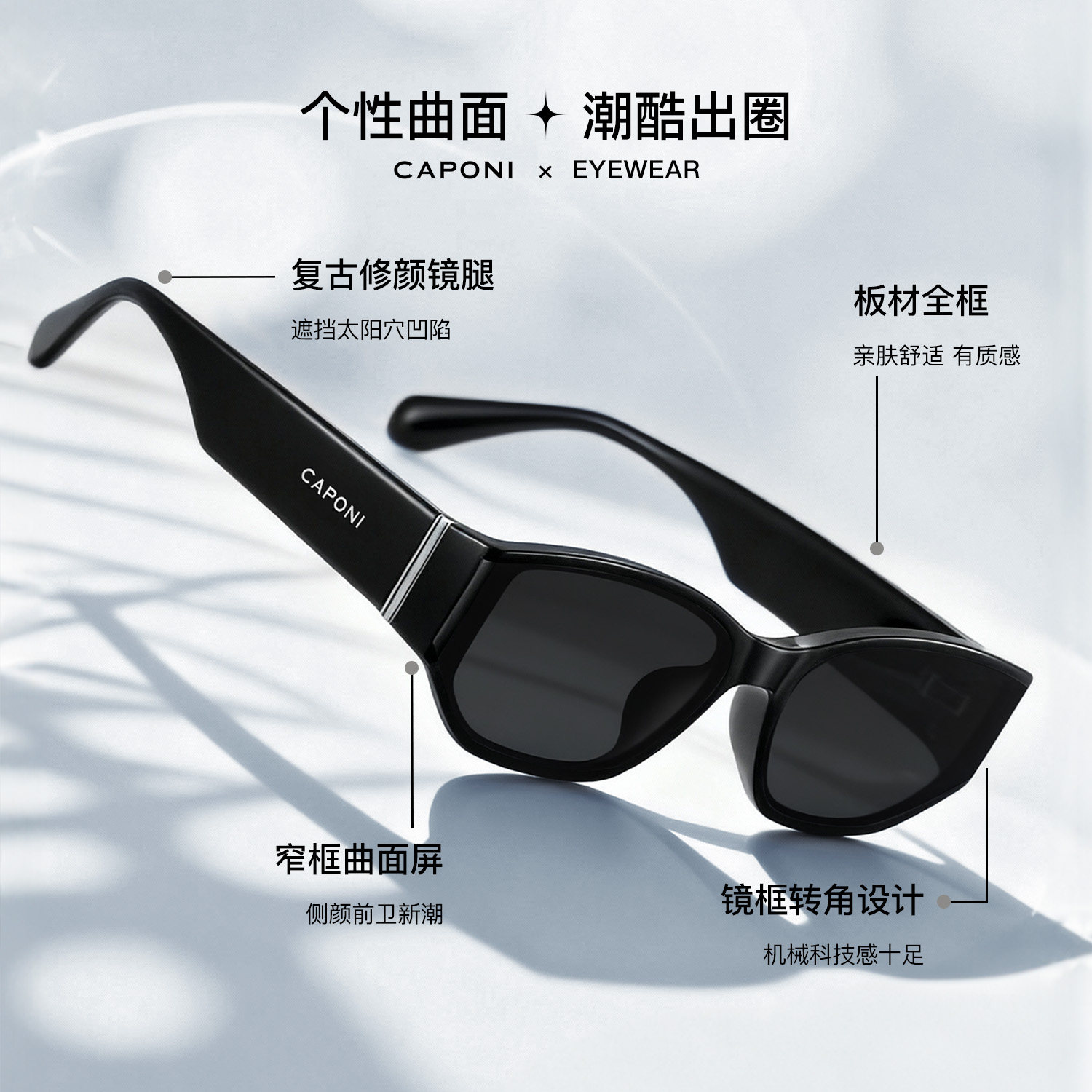 曲面屏猫眼墨镜女款26新款高级感窄框太阳镜男开车防紫外线UV400