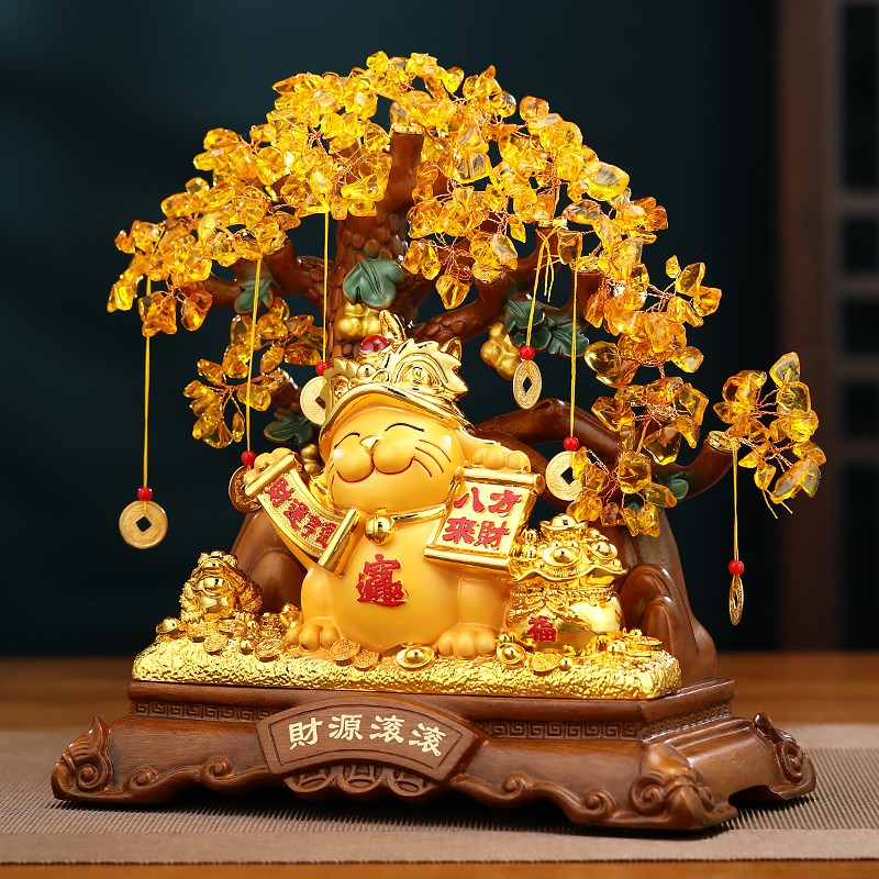 财源滚滚招财f猫发财树摆件客厅办公室酒柜前台装饰品公司开业礼