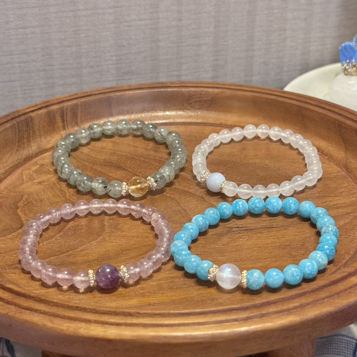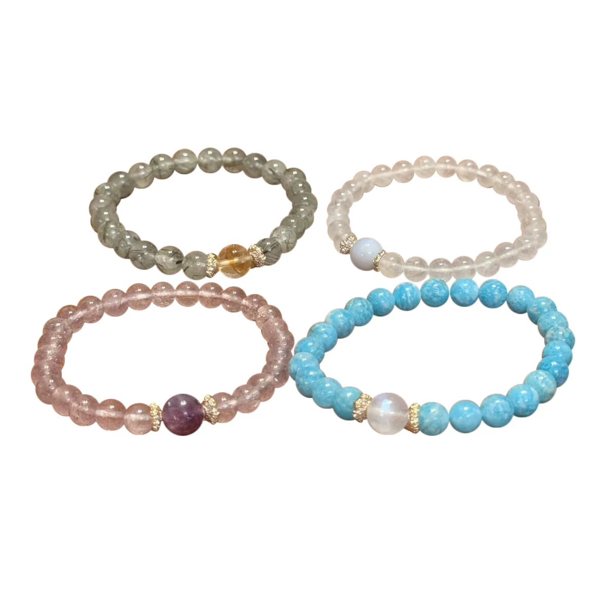 贝奇手作·叠戴的小美丽 天然小珠水晶原创手串绿发晶/草莓晶手链