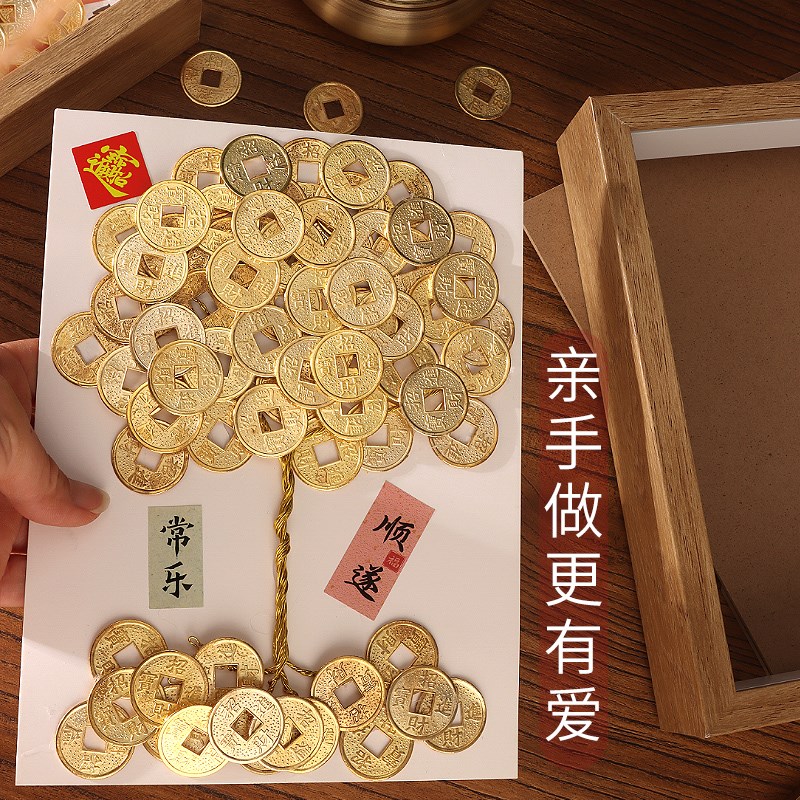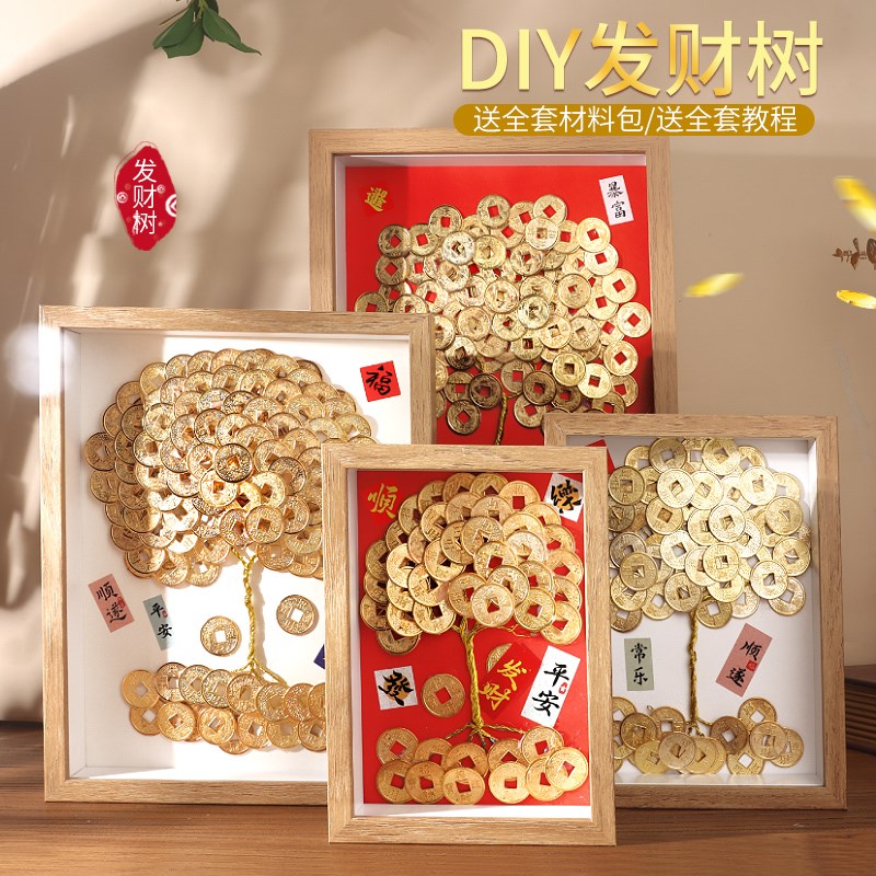 铜钱画发财树相框diy材料包手工摆件乔迁开业送礼摆件摇钱树硬币