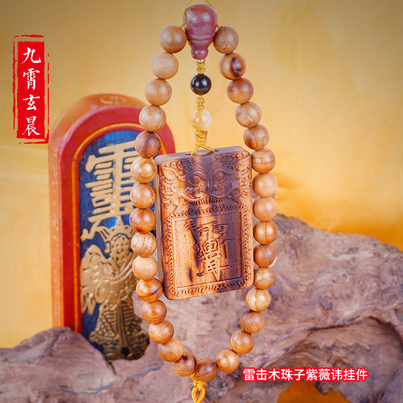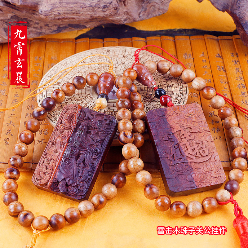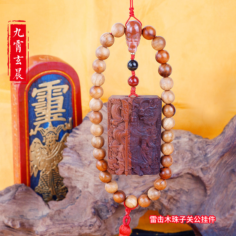 雷击木珠子关公朱砂挂件貔貅印章挂件汽车挂件保真天然木朱砂