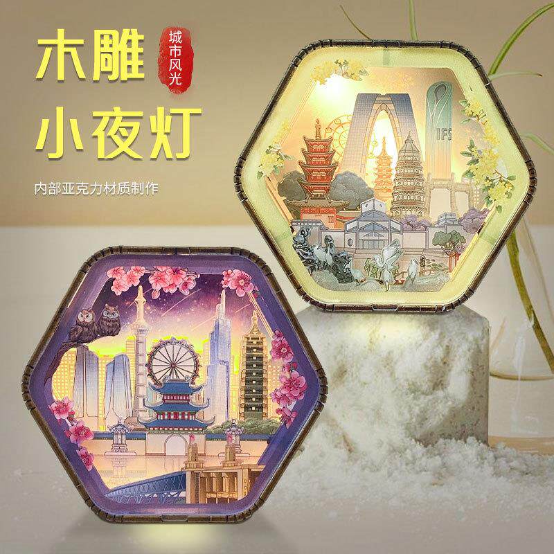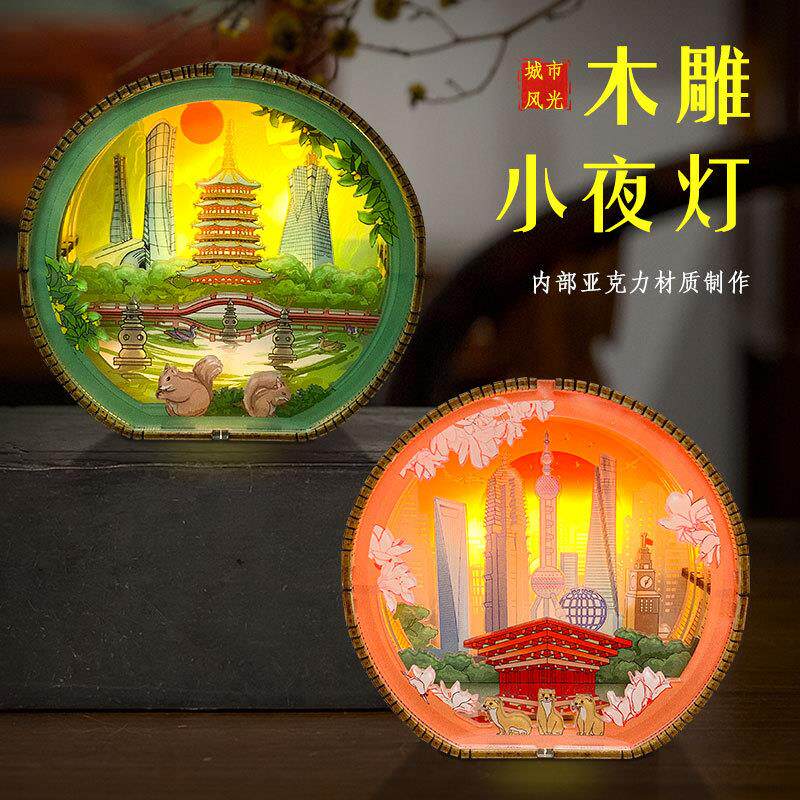 国潮文创木雕灯手工拼装桌面摆件创意3d小夜灯著名景区旅游纪念品