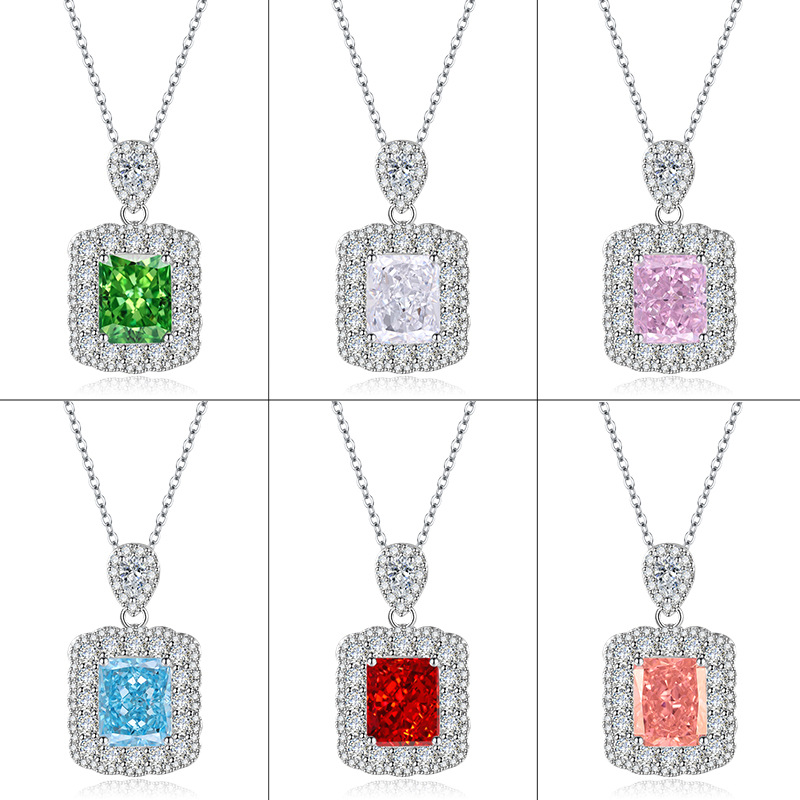 轻奢小众设计长方形冰花切吊坠欧美时尚豪镶紫色高碳钻项链过灯光