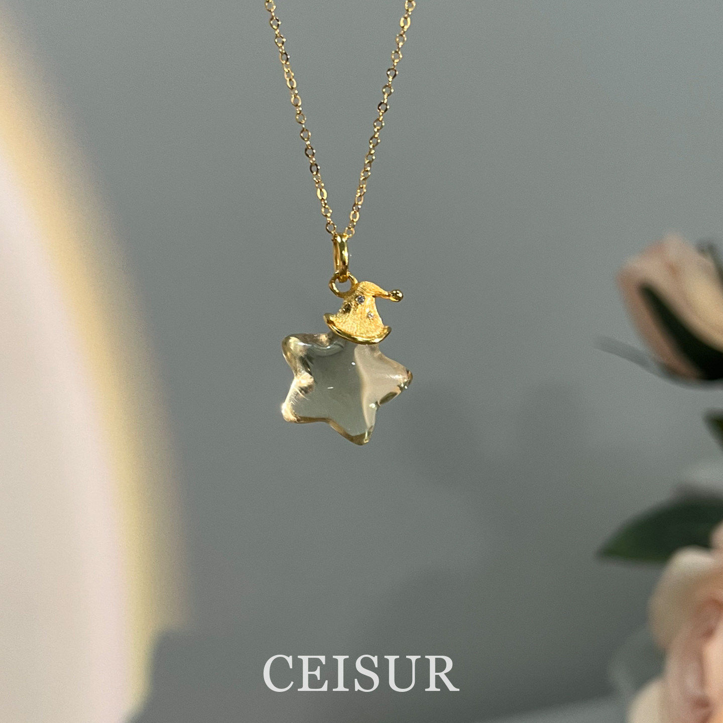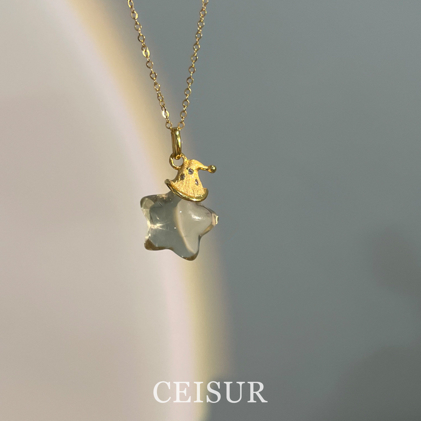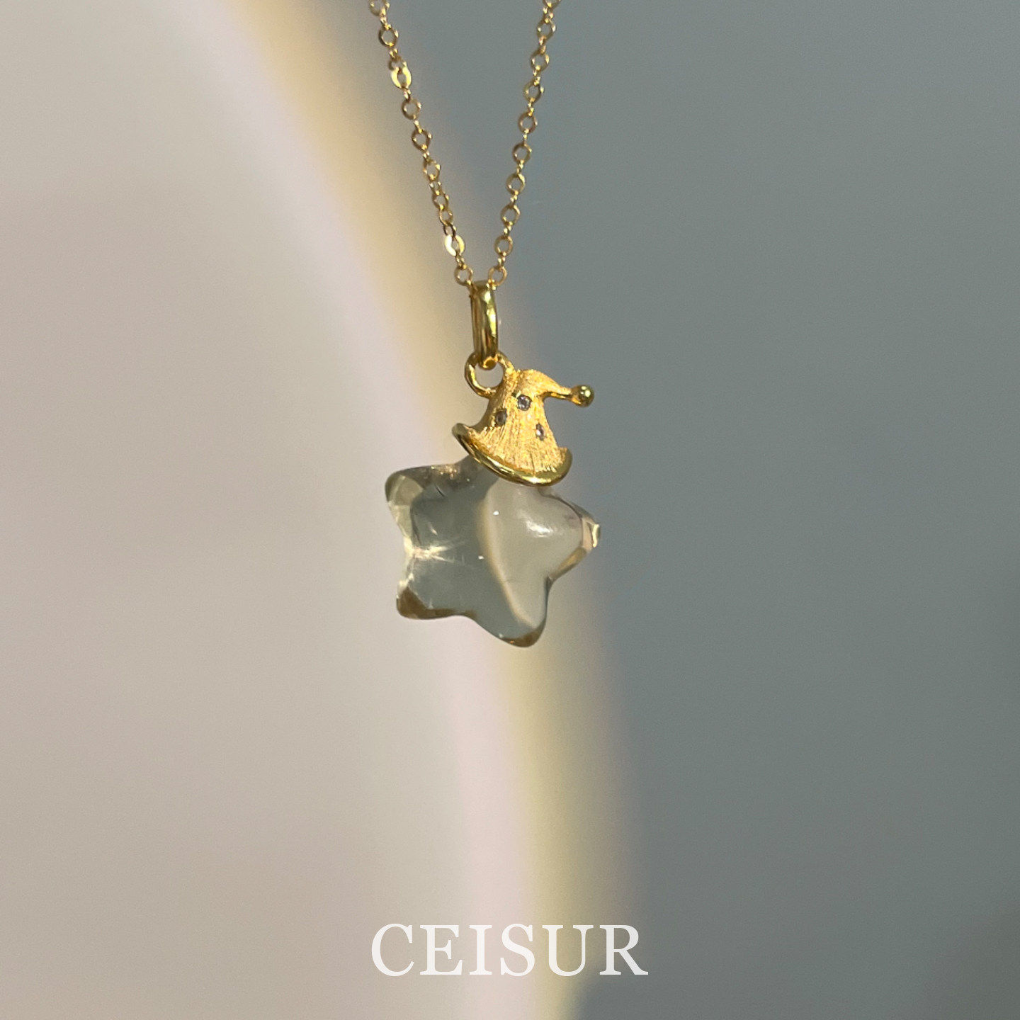 戴帽子的星星~可爱萌趣冰透星星吊坠项链女款精致独特漂亮毛衣链