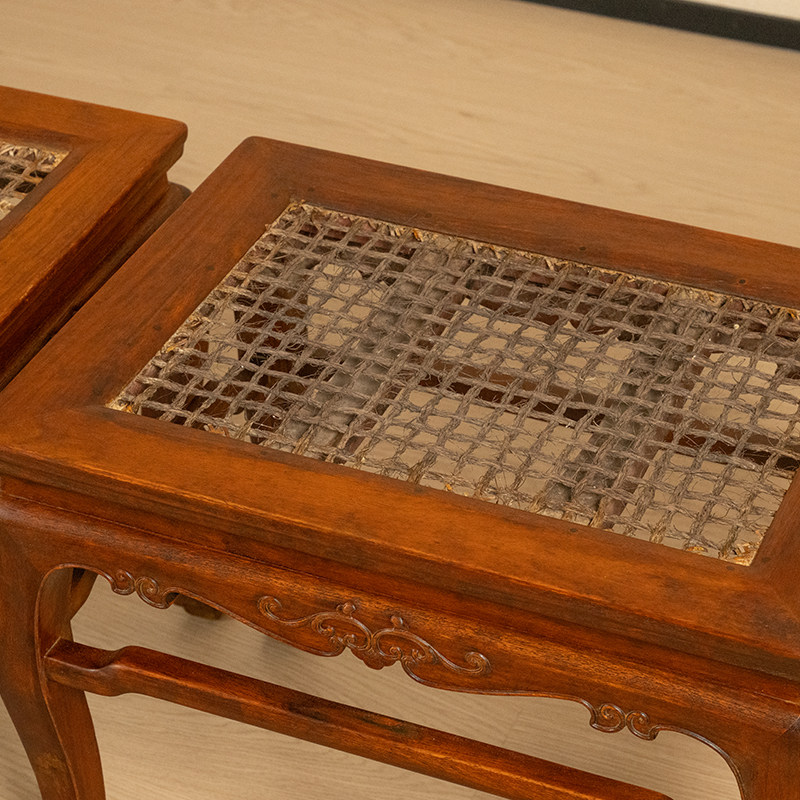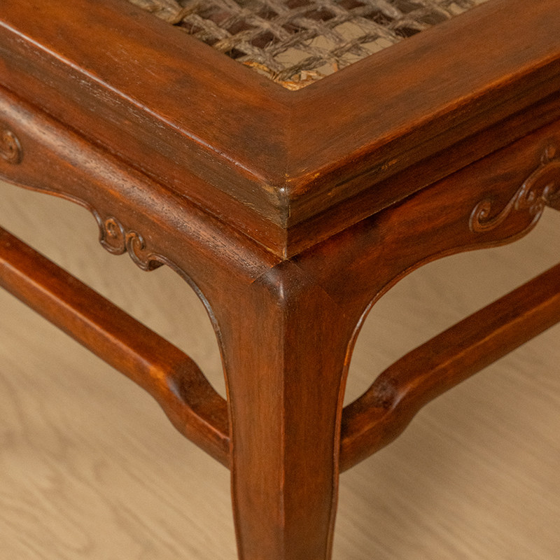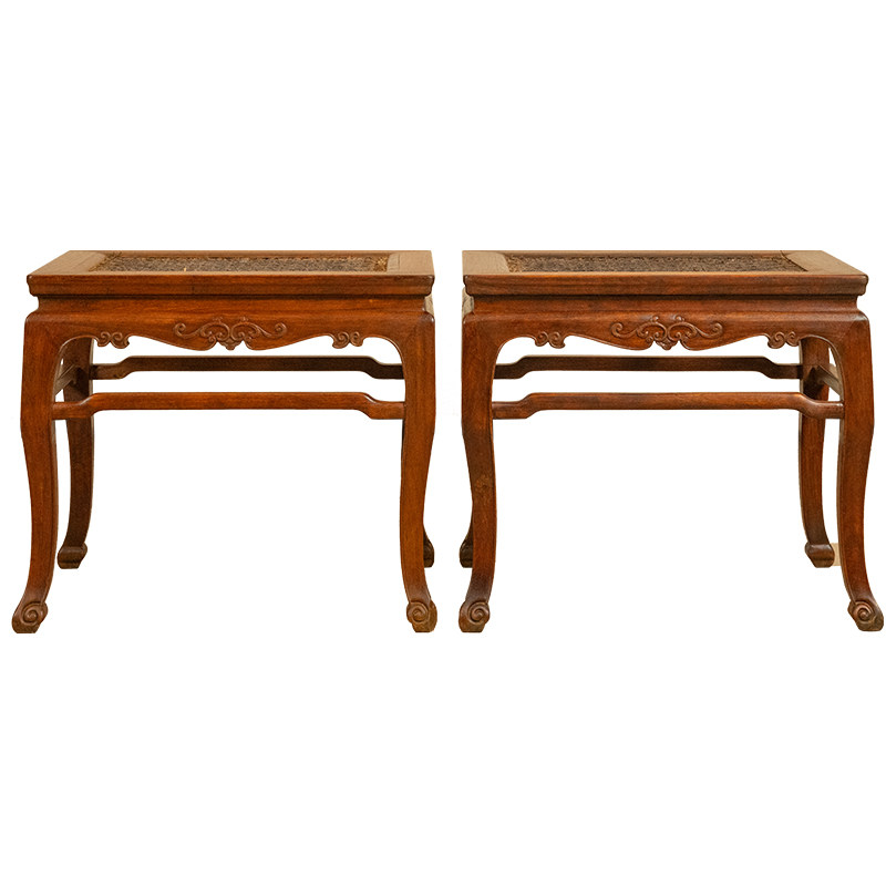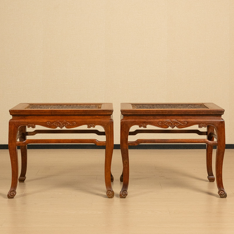 清代红木束腰三弯腿卷草纹方凳(一对)明清家具收藏大红酸枝凳子