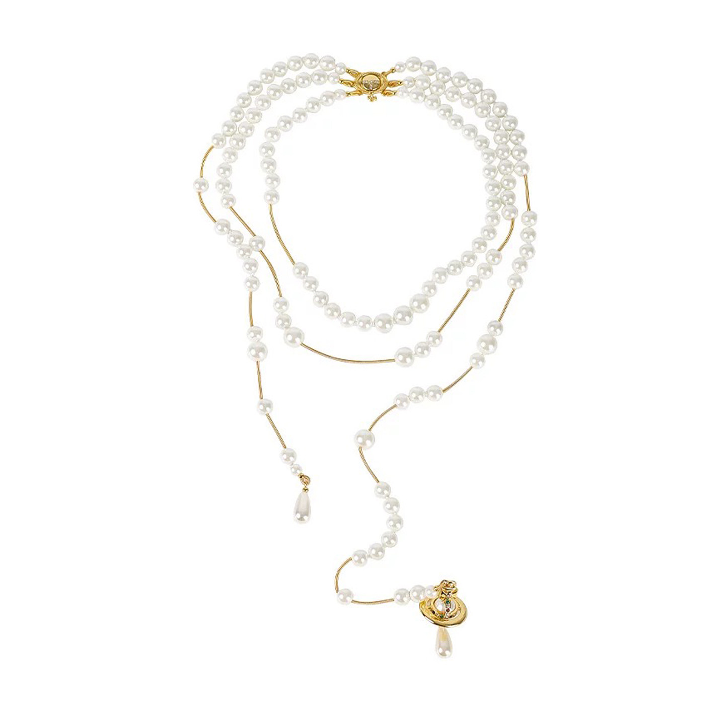 孙怡同款项链女时尚高级轻奢长款土星颈链破碎珍珠多层叠戴串珠链