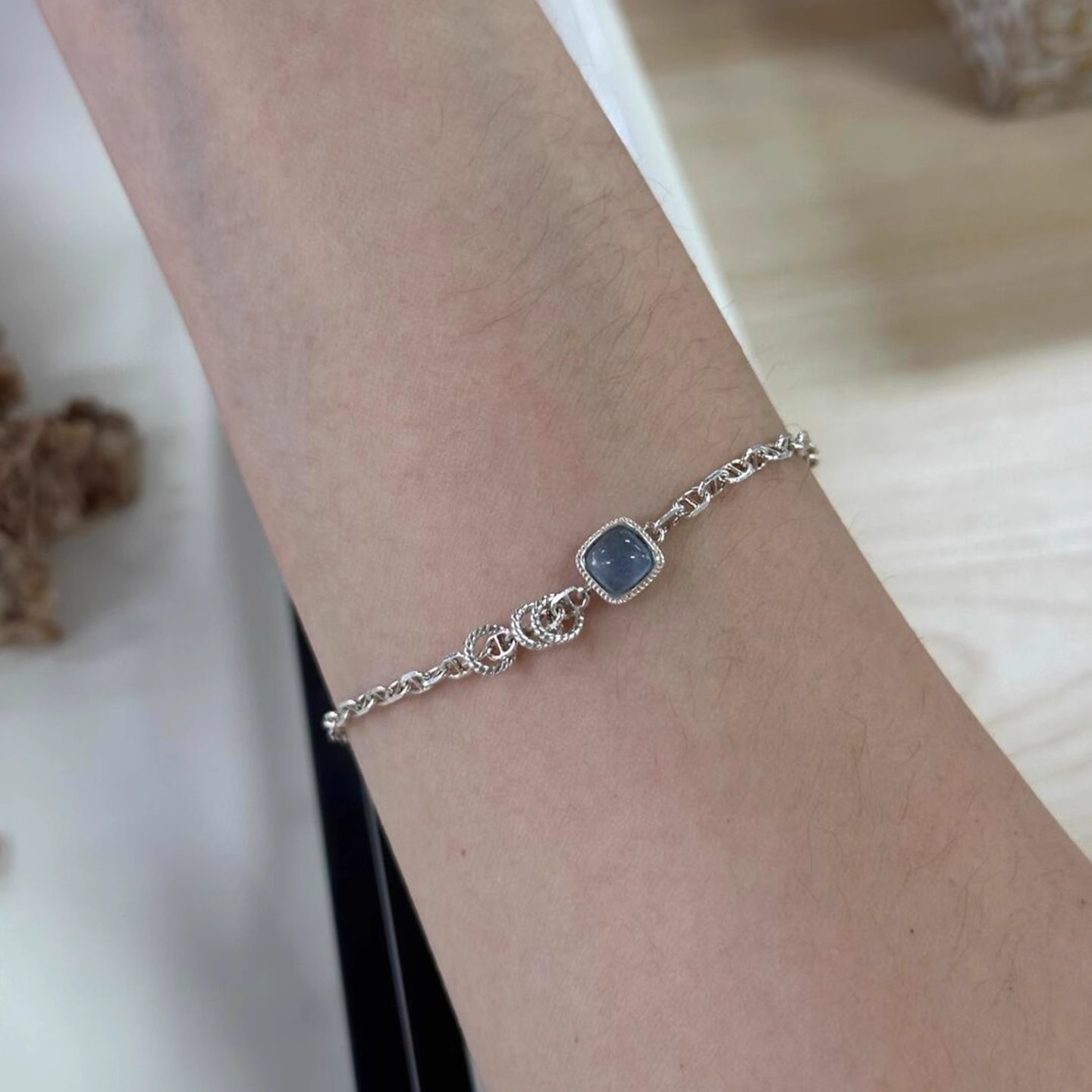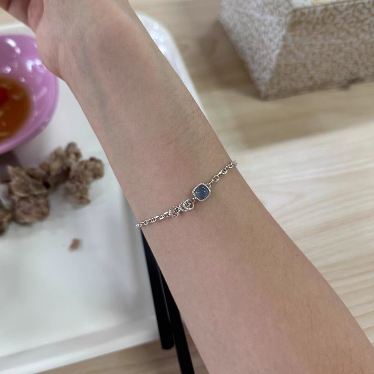 蓝色小冰块方糖手链女款轻奢小众精致叠戴猪鼻子跑环拼接闺蜜手饰