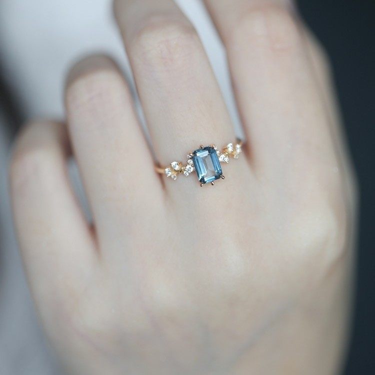 Bleu nuit蓝夜幻想曲 沦陷了 浓郁伦敦蓝高仿托帕石宝石轻奢戒指