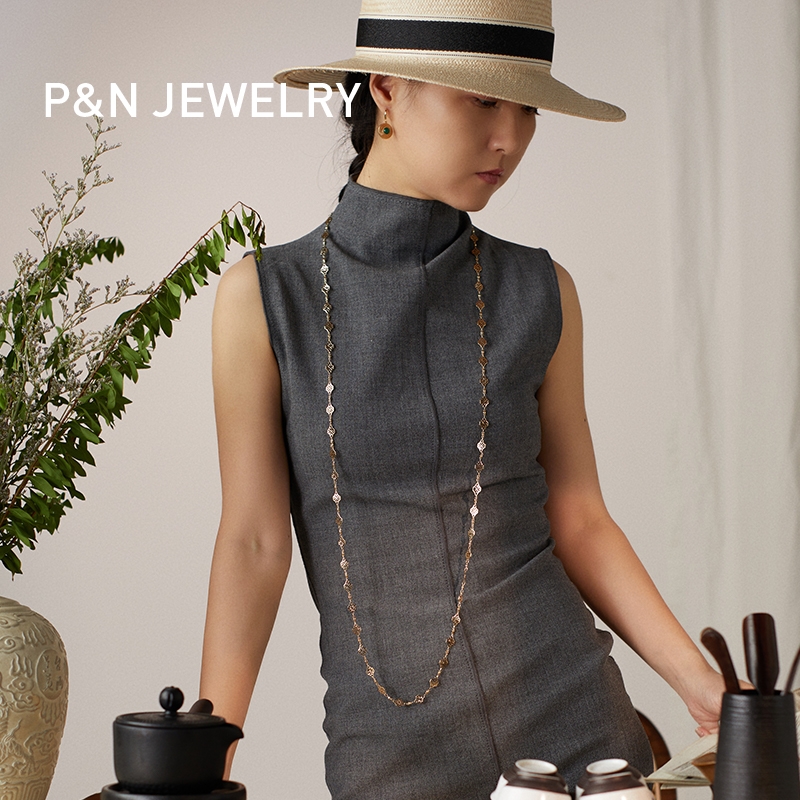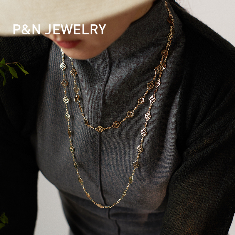 pn镂空雕花毛衣链项链法式复古设计时尚秋冬百搭气质轻奢项链