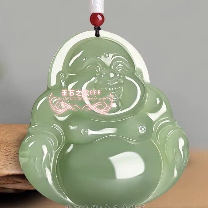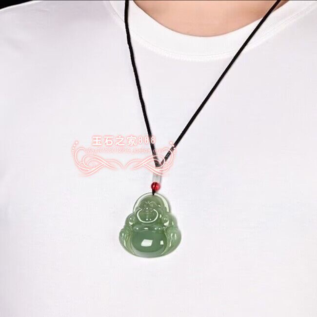 玉佛项链女款和田色玉吊坠弥勒佛挂件青玉真玉石大肚佛公白玉佩