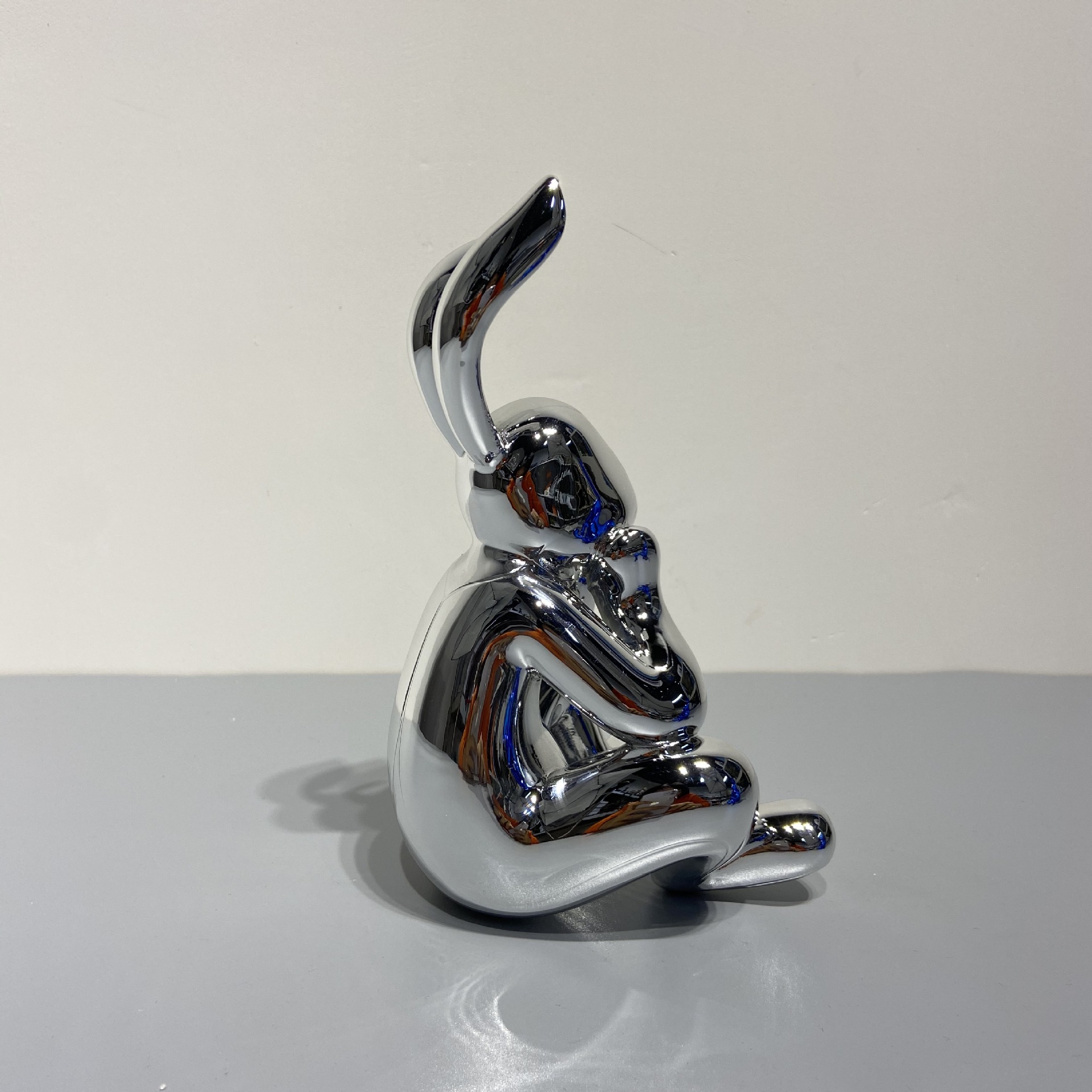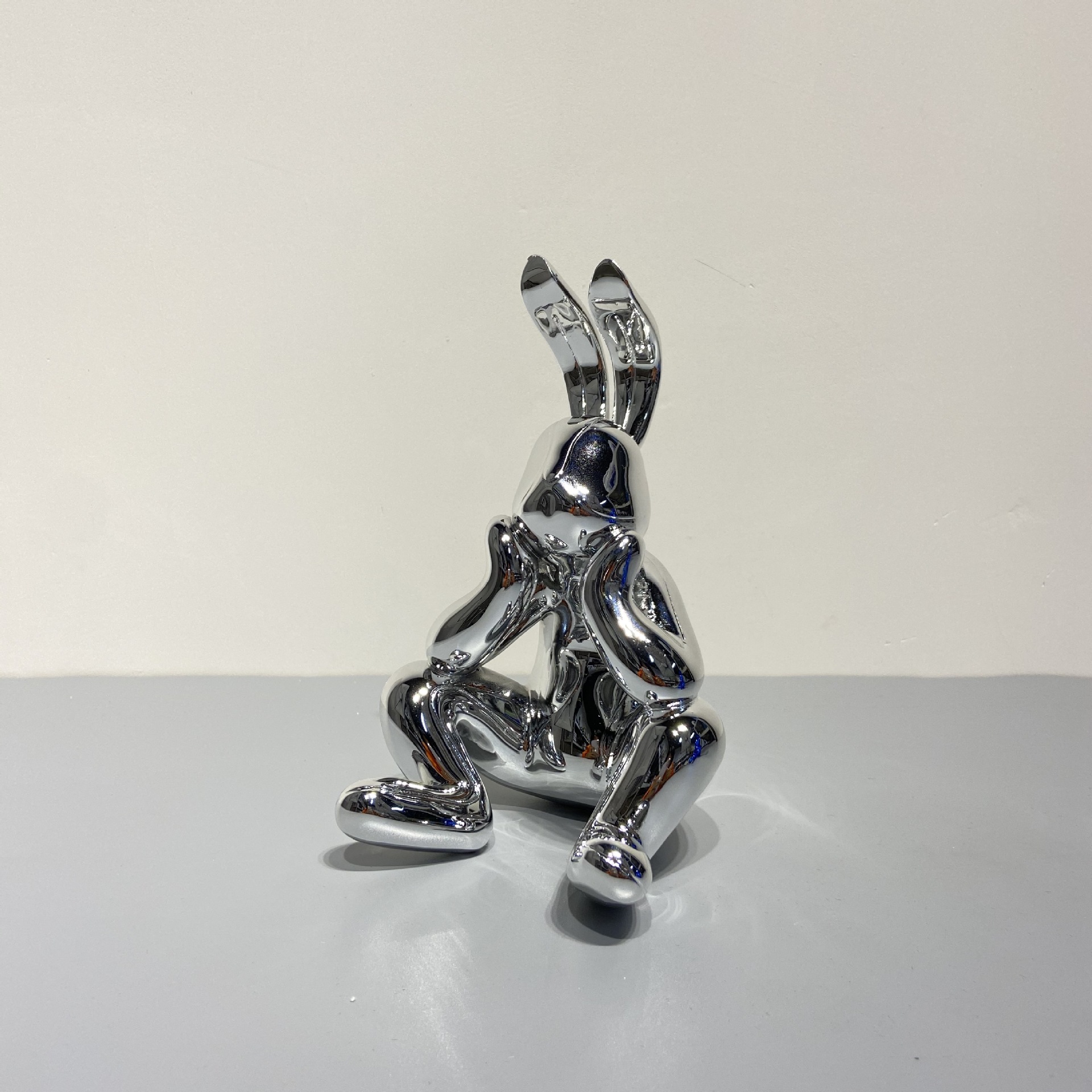 蓝色兔子摆件后现代轻奢儿童房银兔子家居饰品样板间软装桌面摆件