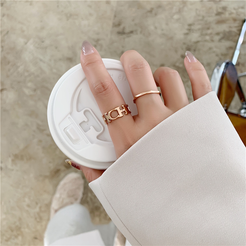 大码戒指女胖MM食指小众设计love菱形ins潮欧美简约大号胖手指环