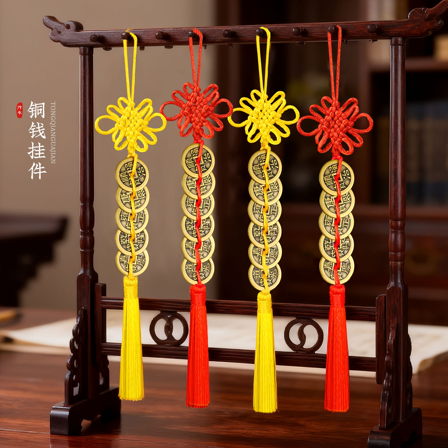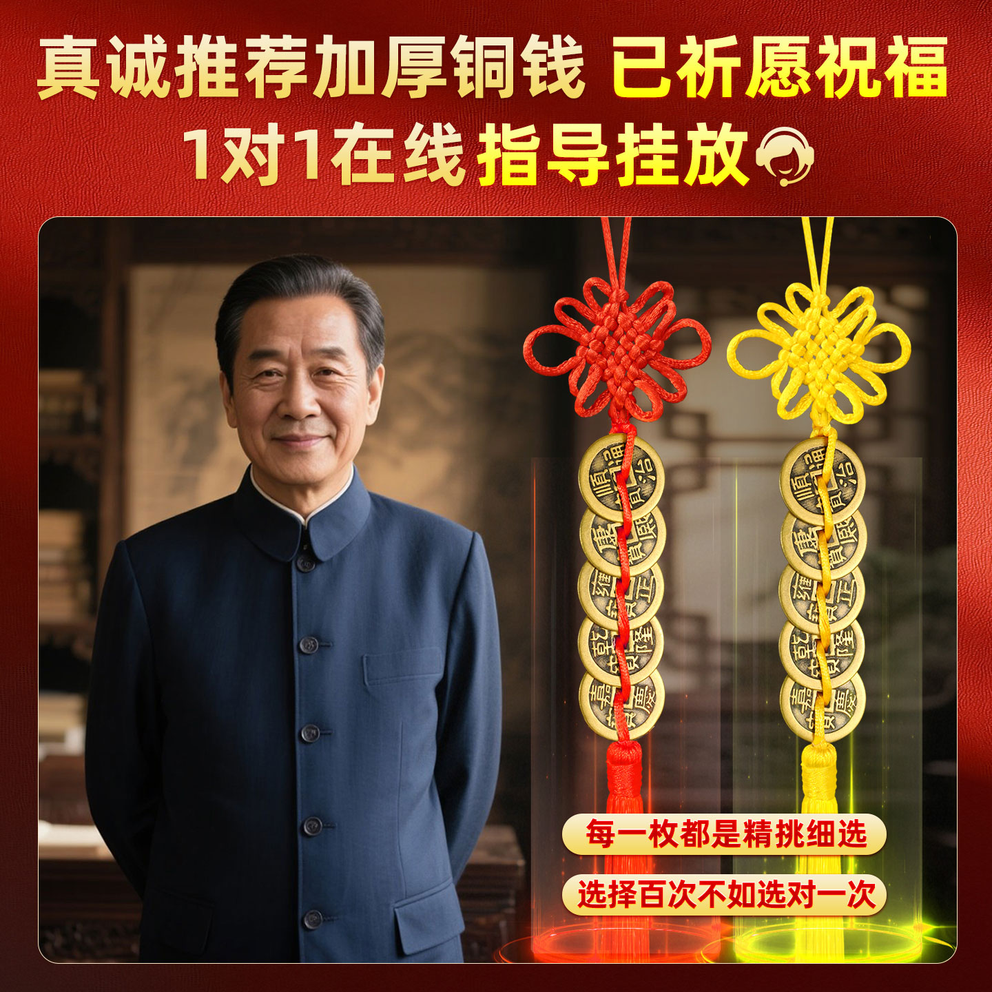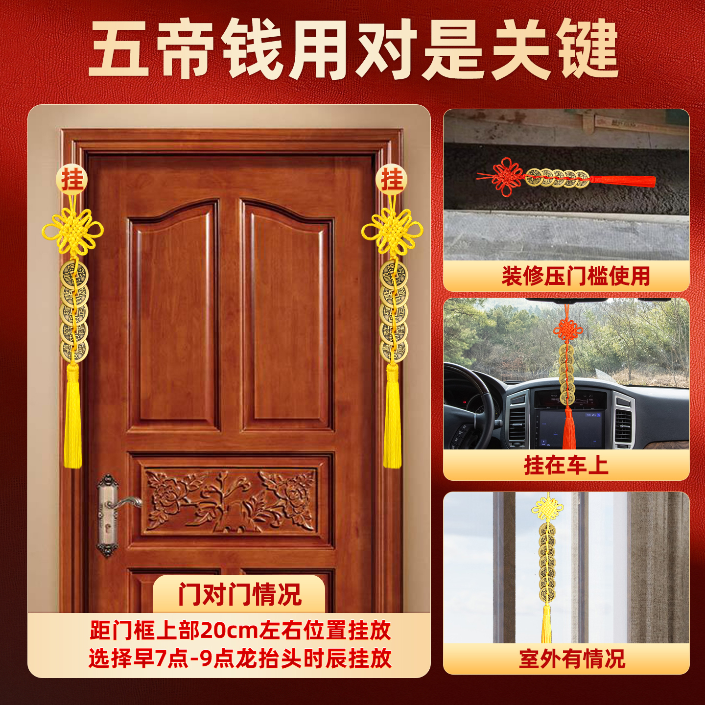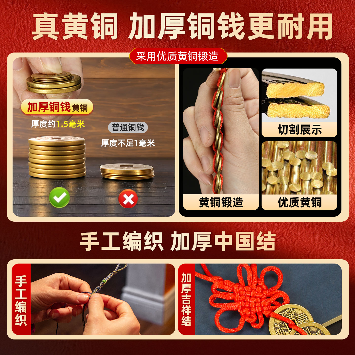 黄铜加厚五帝钱挂件门对门红黄绳压门槛铜钱六帝钱三六八九十帝钱