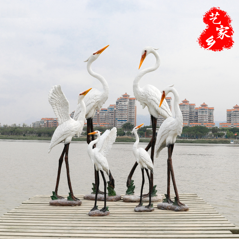 仿真仙鹤玻璃钢雕塑户外园林景观喷泉水池丹顶鹤鸟类装饰大型摆件