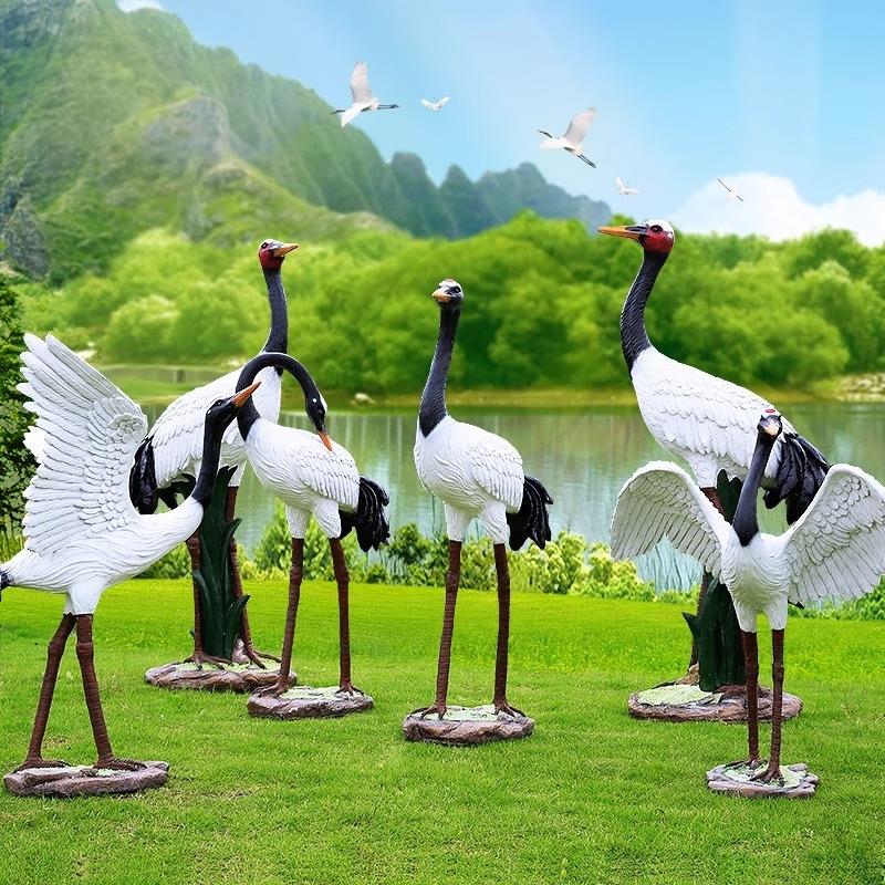 仿真仙鹤装饰摆件丹顶鹤雕塑玻璃钢动物模型庭院户外园林景观小品