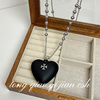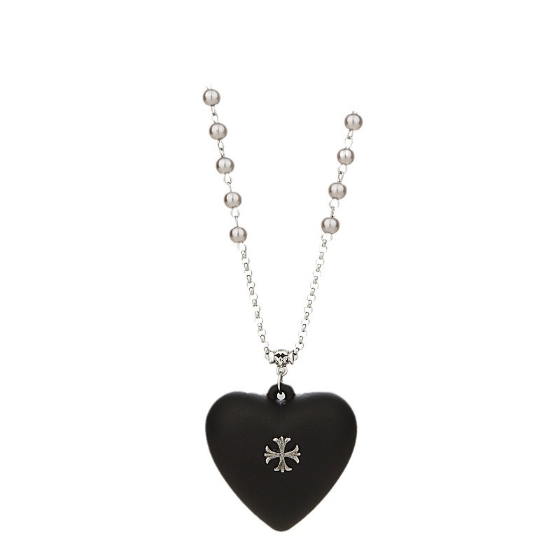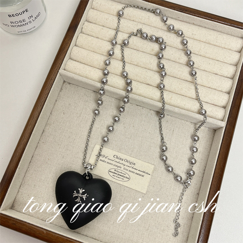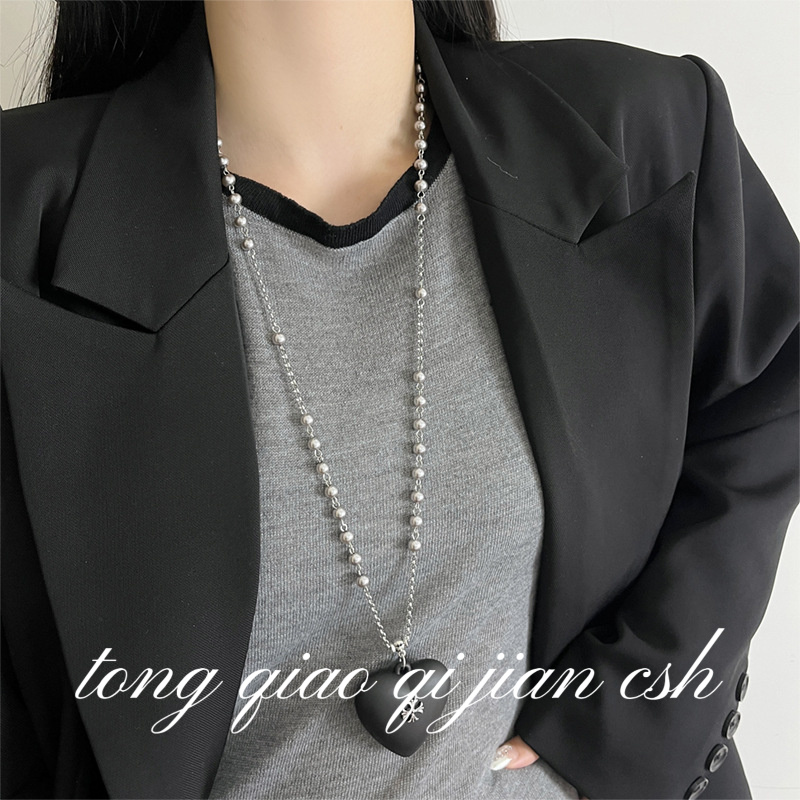 黑色十字架爱心吊坠项链女轻奢小众高级感珍珠毛衣链长款百搭配饰