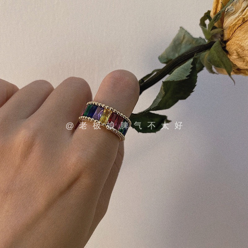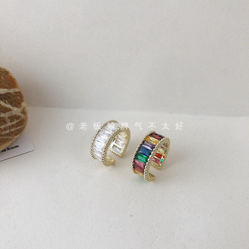可当戒指可当耳夹~ 法式冷淡风设计感锆石七彩复古ins港风 5753