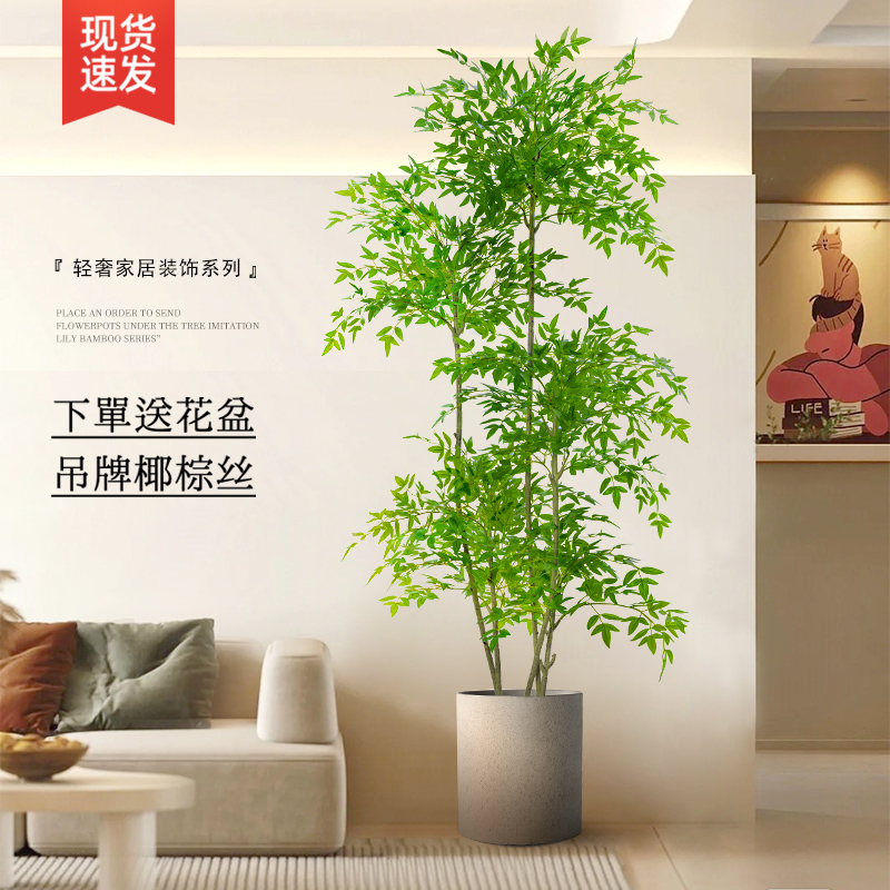 大型落地摆件家居饰品电视柜装饰轻奢客厅仿真绿植南天竹假树