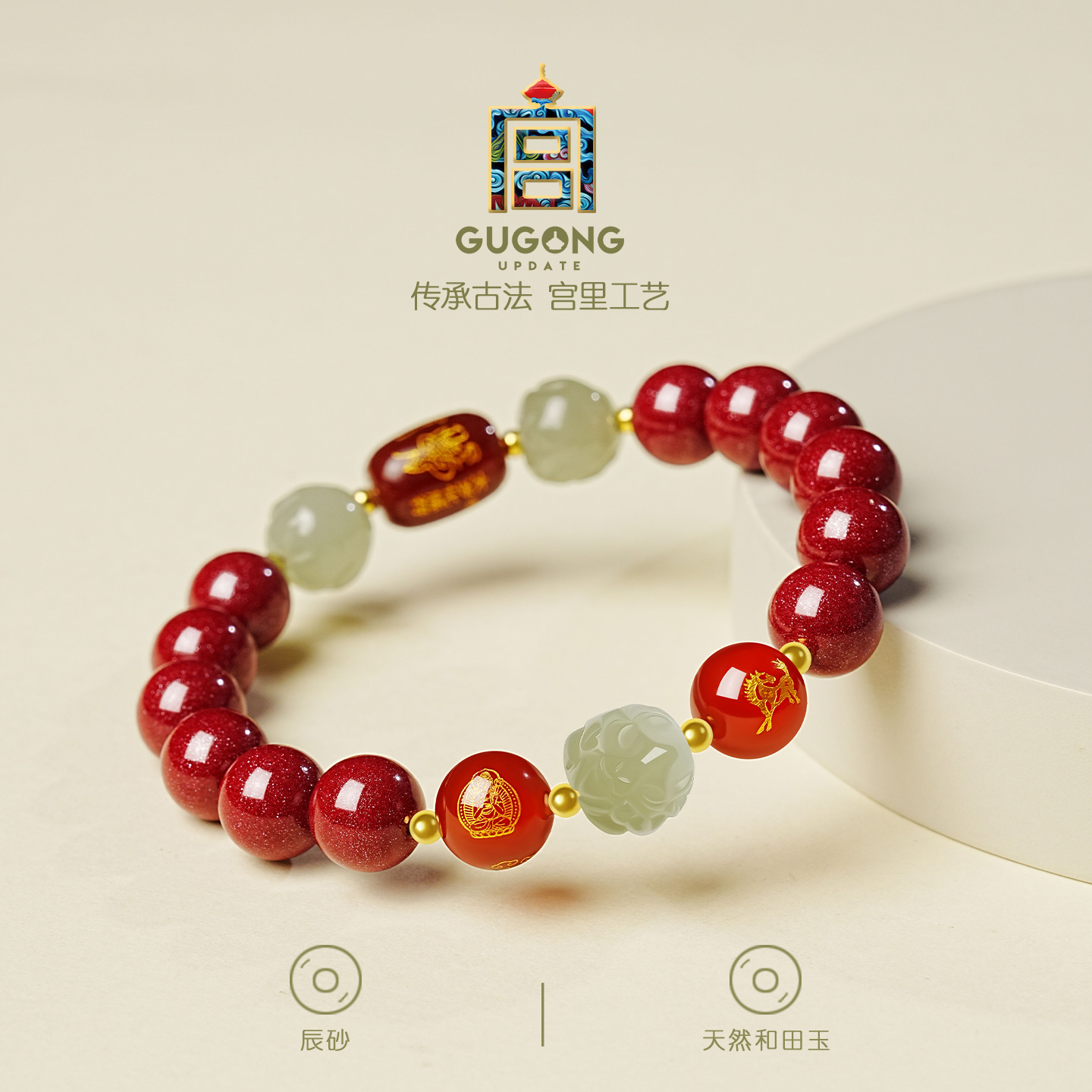 宫里上新朱砂手串女款正品红色手链三合六合马年本命年生日礼物