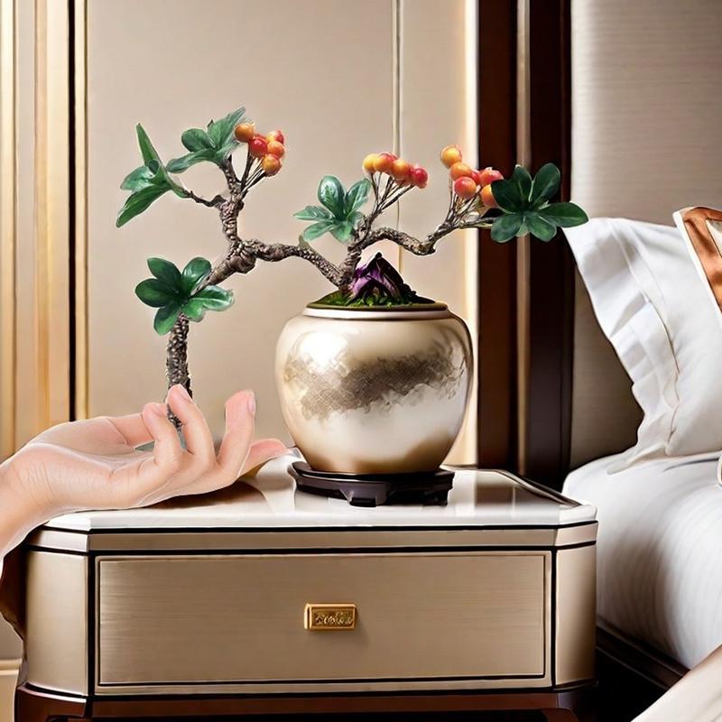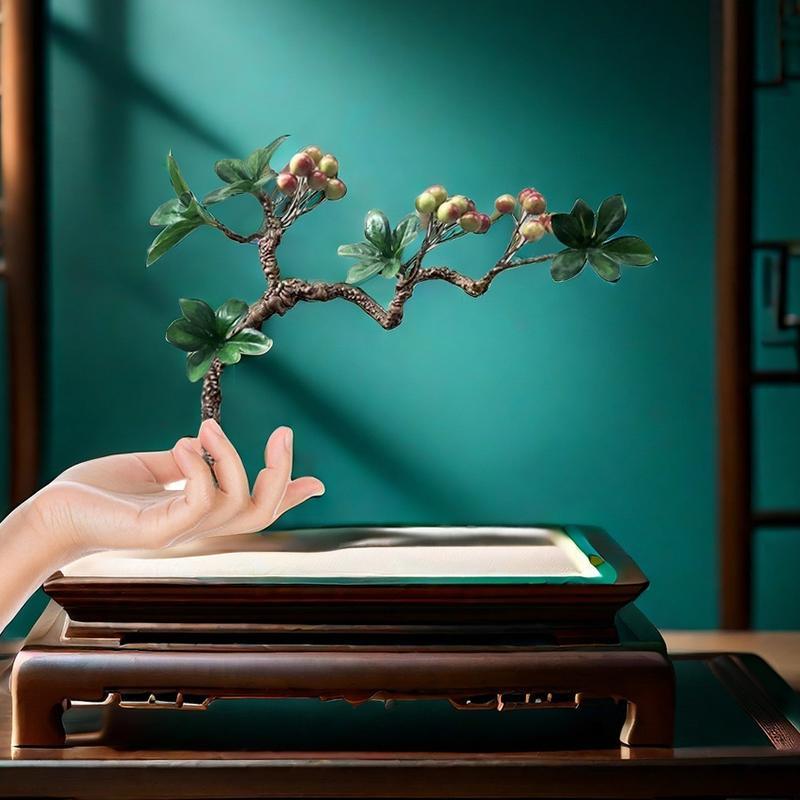 中式彷真绿色植物屏风摆件盆景禅意客厅装饰品玄关办公室花瓶彷真