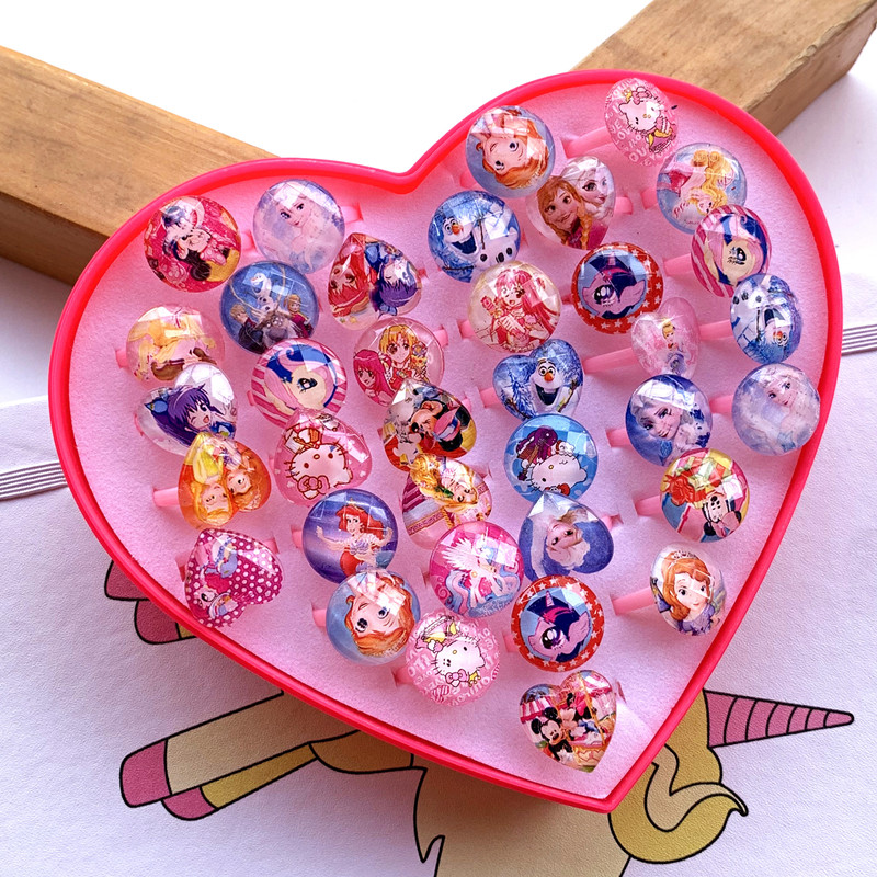 儿童玩具爱心钻石戒指配饰日韩卡通饰品宝石公主指环礼盒装玩具爱