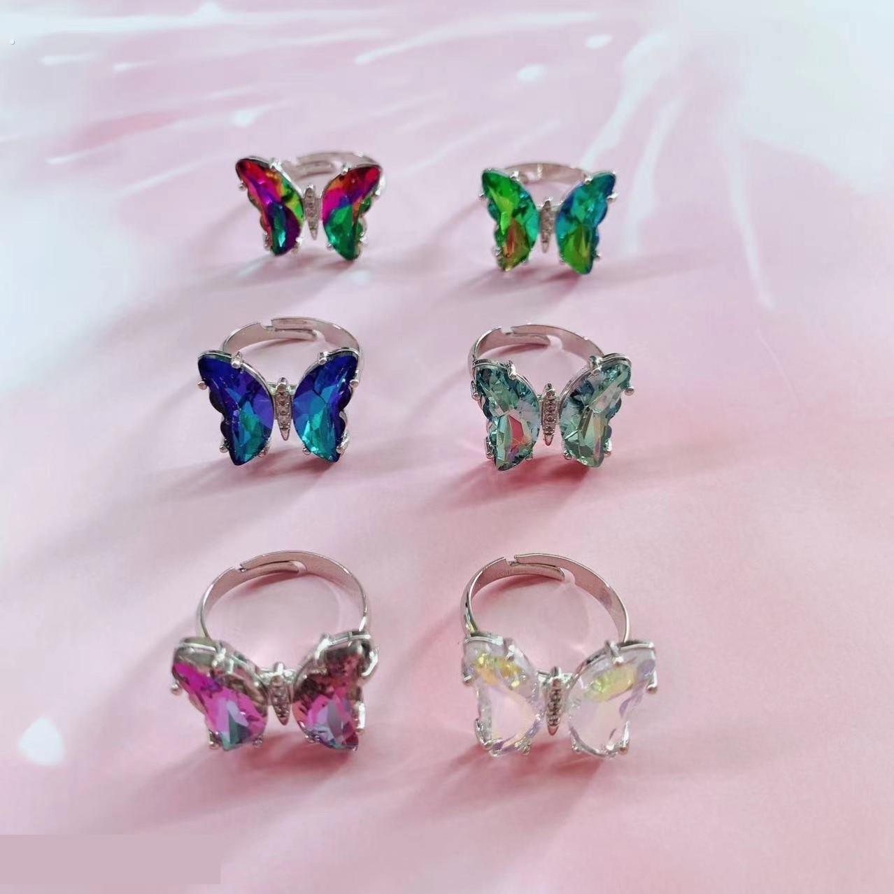 儿童小孩子钻石粉色宝石水晶戒子公主女孩礼物尾戒女童蝴蝶戒指女