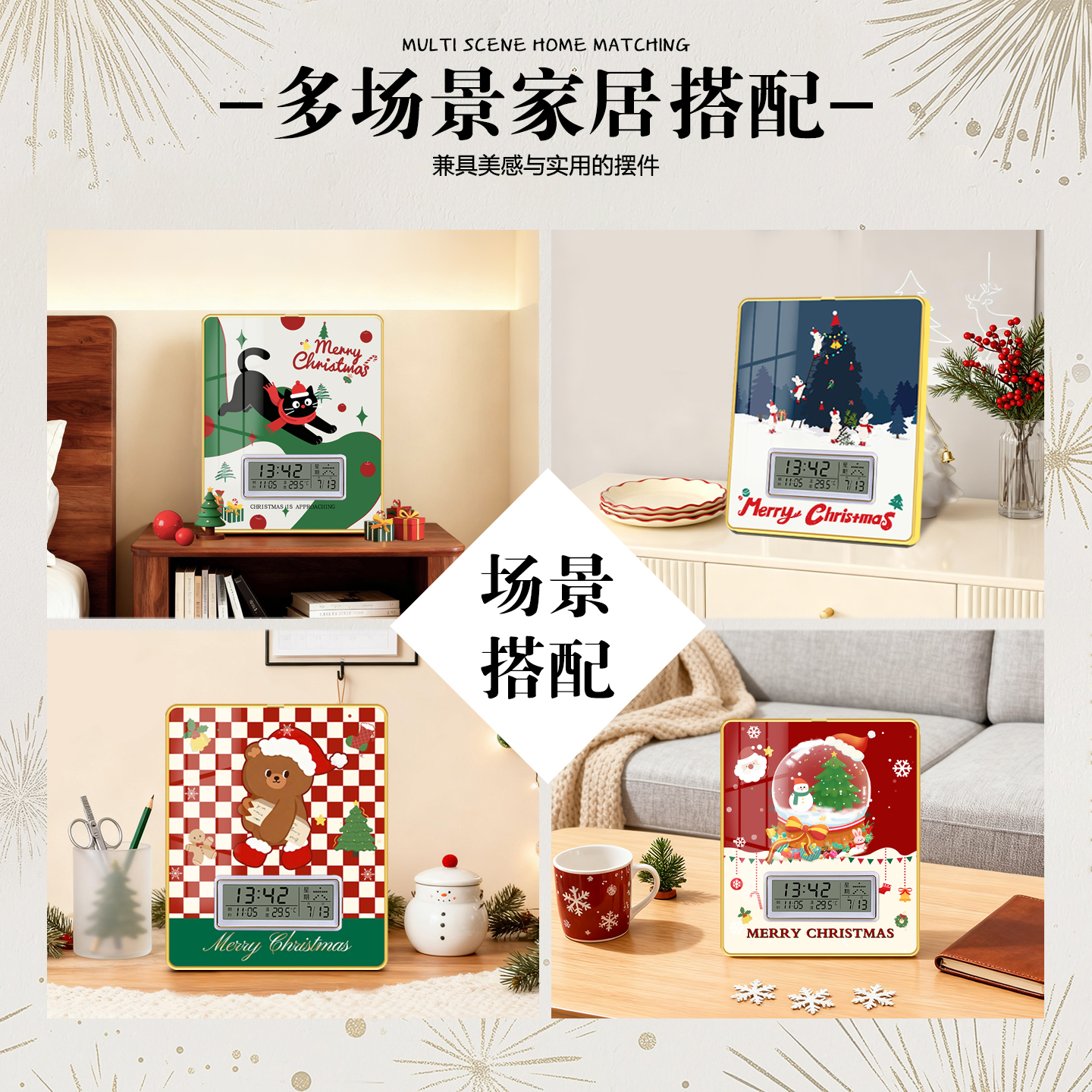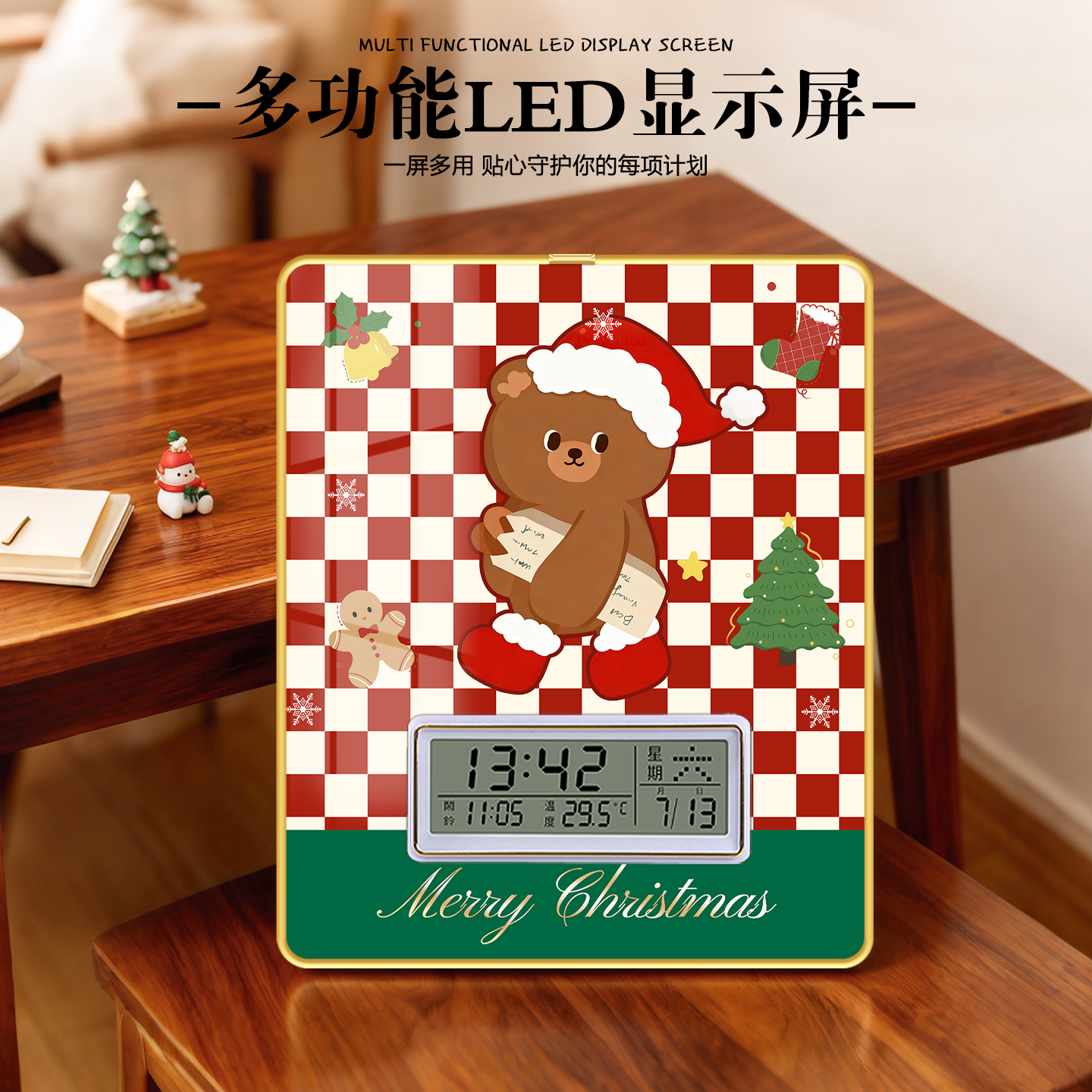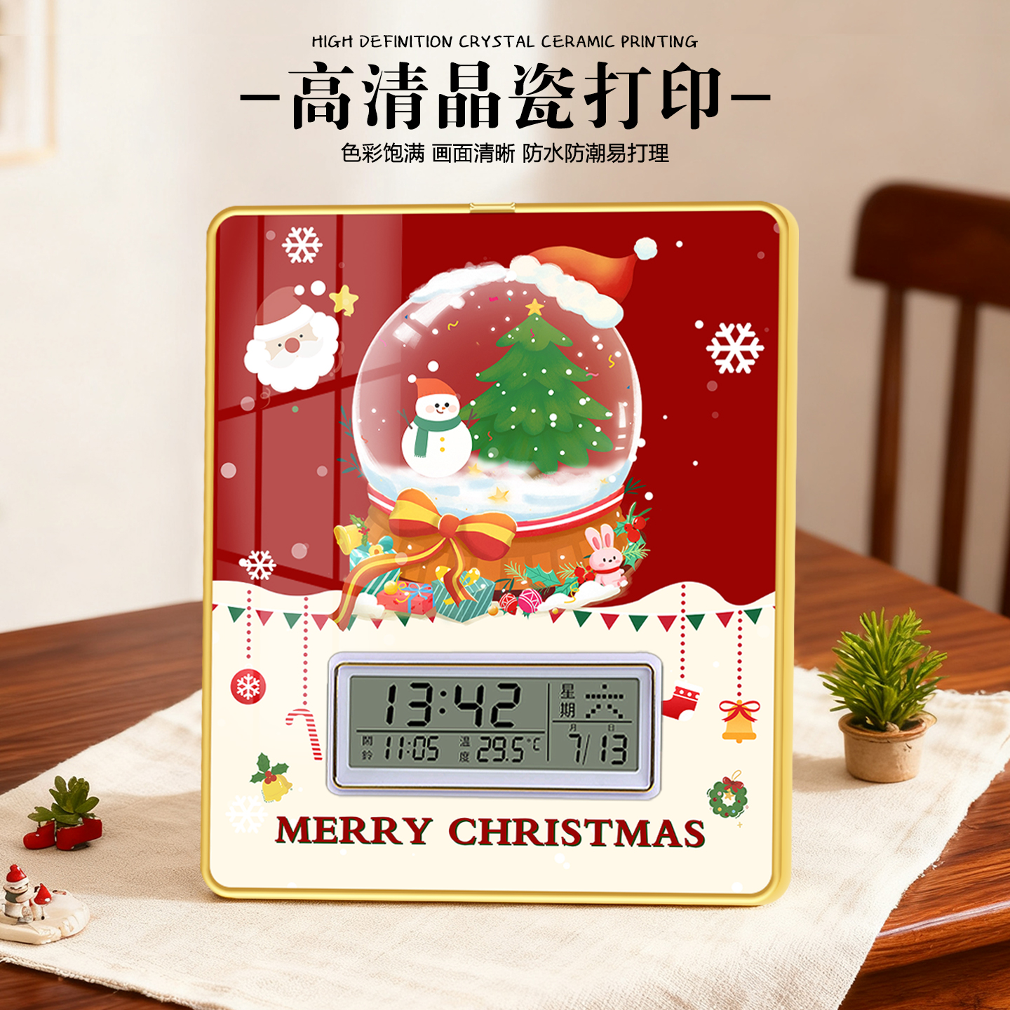 圣诞节装饰2025新款闹钟桌面摆件圣诞老人时钟摆台平安夜场景布置