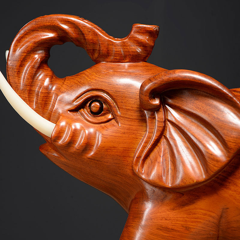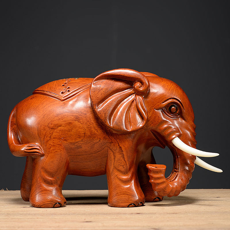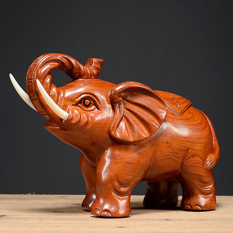 花梨木雕大象摆件一对纳福吸水小象实木质客厅玄关吉祥装饰工艺品