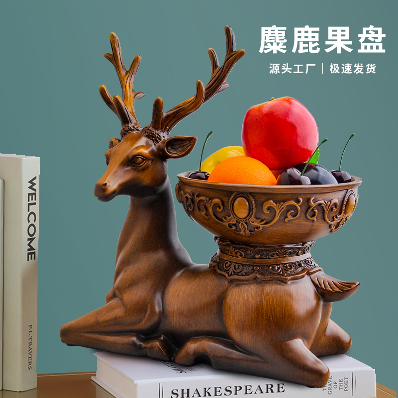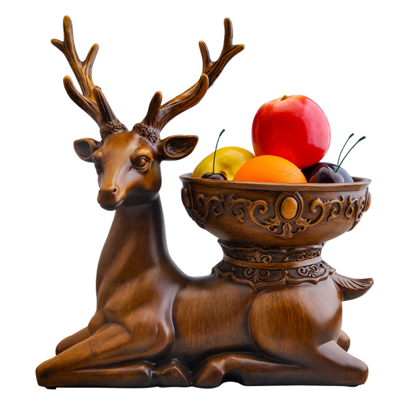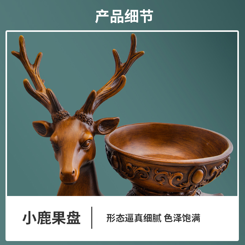 欧式新年麋鹿果盘桌面摆设客厅电视柜酒柜装饰品玄关小鹿收纳摆件