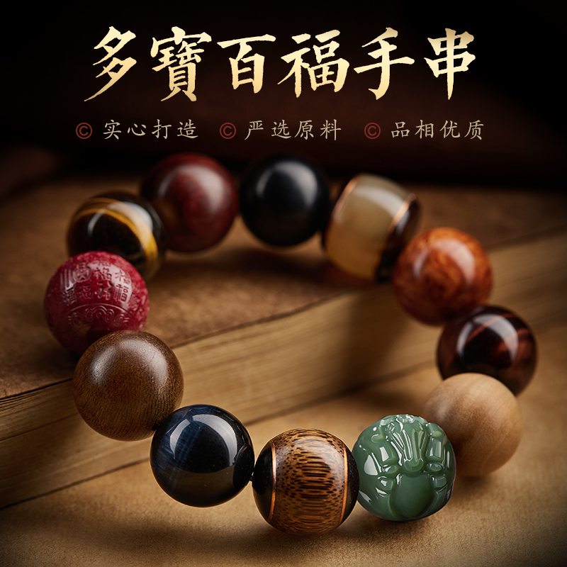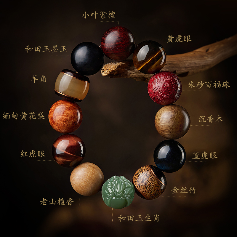 多宝手串男士和田玉十二生肖文玩佛珠盘玩小叶紫檀沉香木朱砂手链